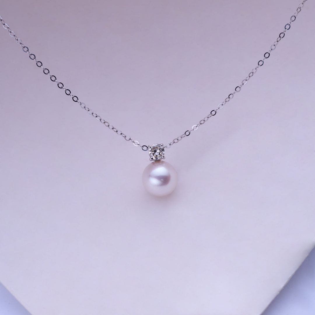 18K 솔리드 골드 다이아몬드 하나다마 아코야 진주 목걸이 KN00271