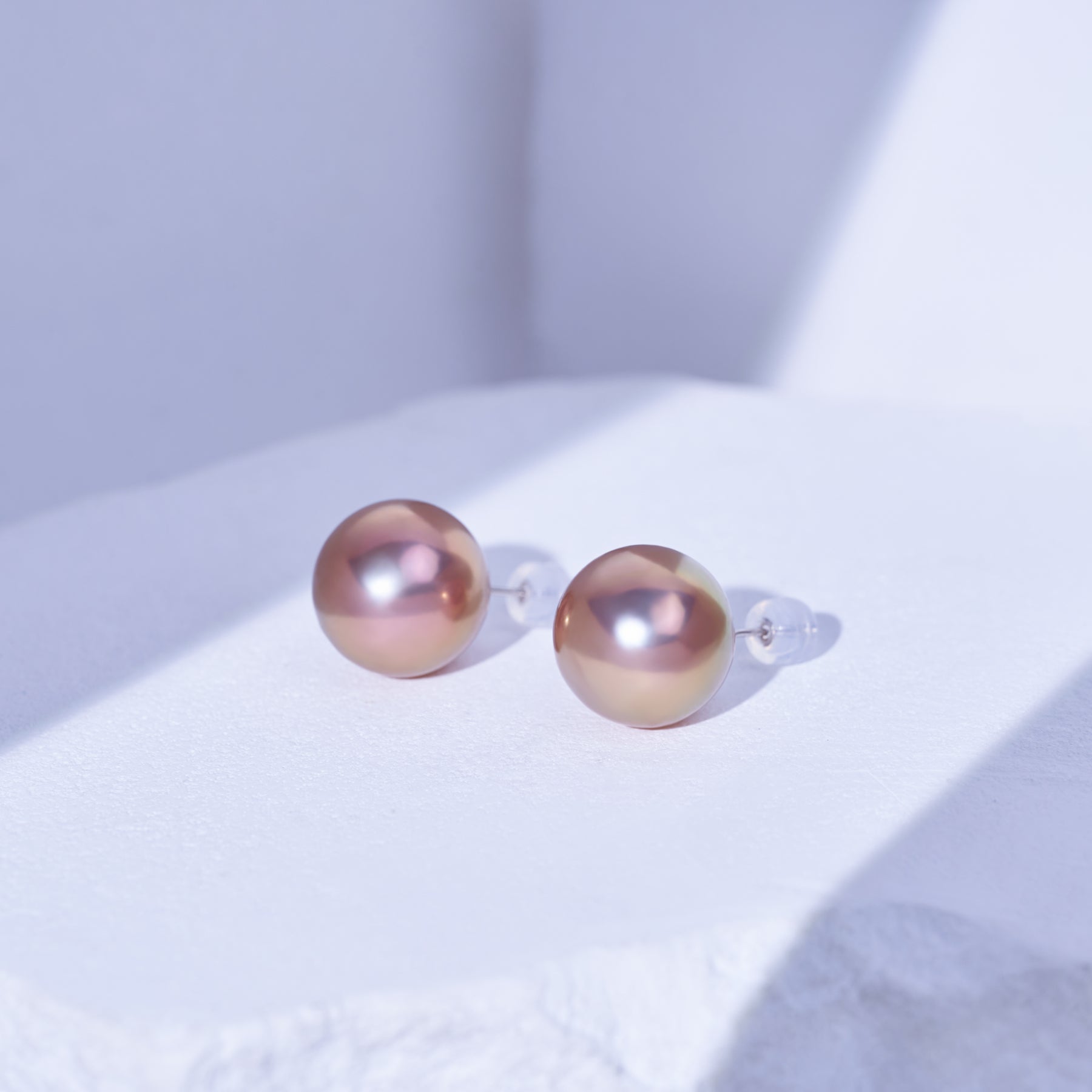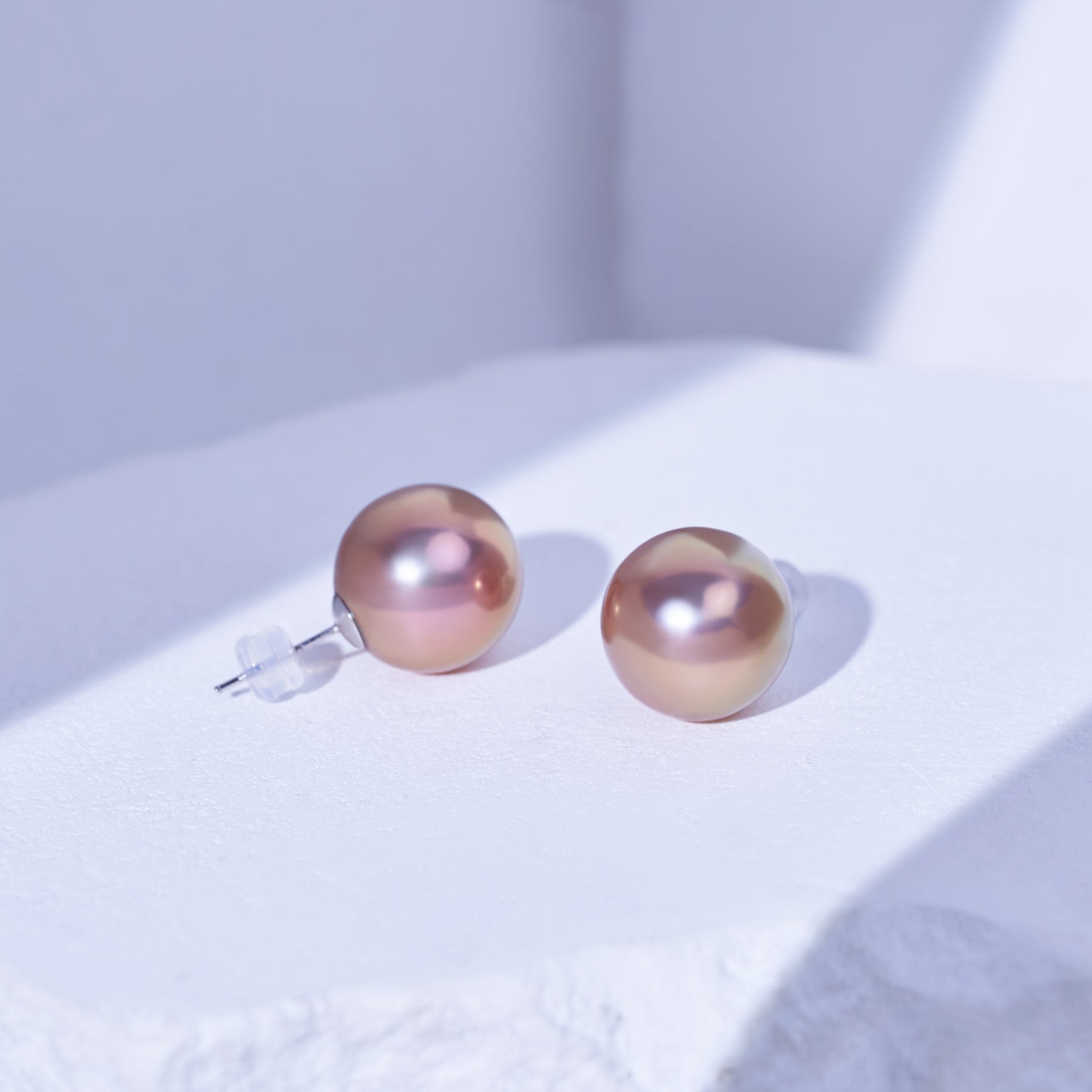 Elegant 18K Gold Top Grade Edison Purple Pearl Stud Earrings KE00019 - PEARLY LUSTRE