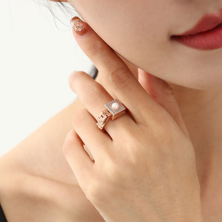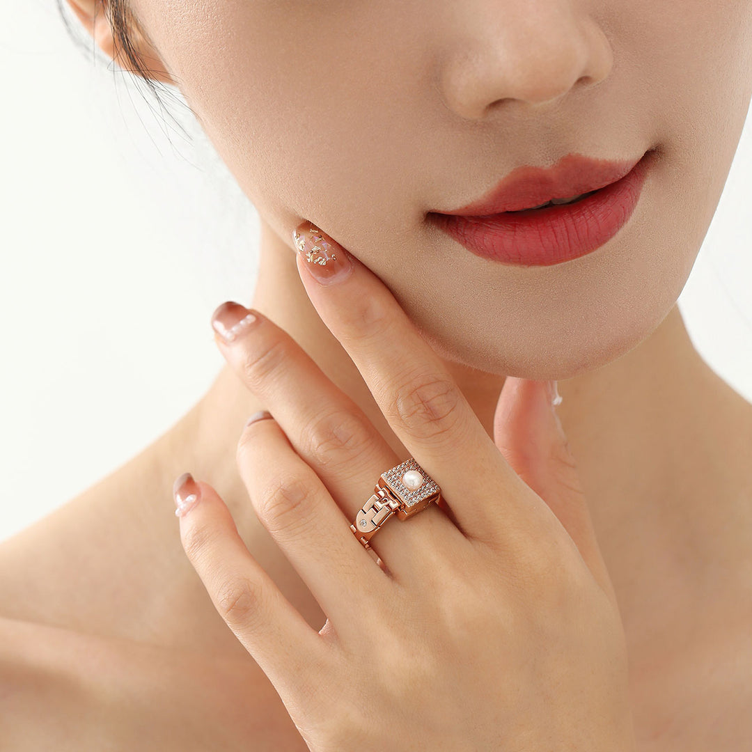 이 스포티한 진주 반지의 세련되고 스타일리시한 영감을 느껴보세요. 그 단순함은 어떤 경우에도 완벽하게 어울립니다.