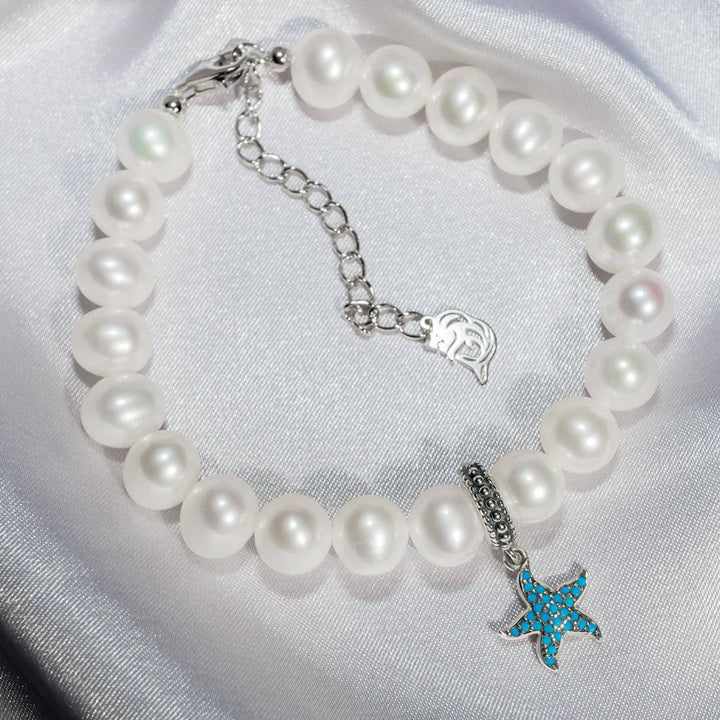 반짝이는, 특별한, 젊은 불가사리 진주 팔찌.