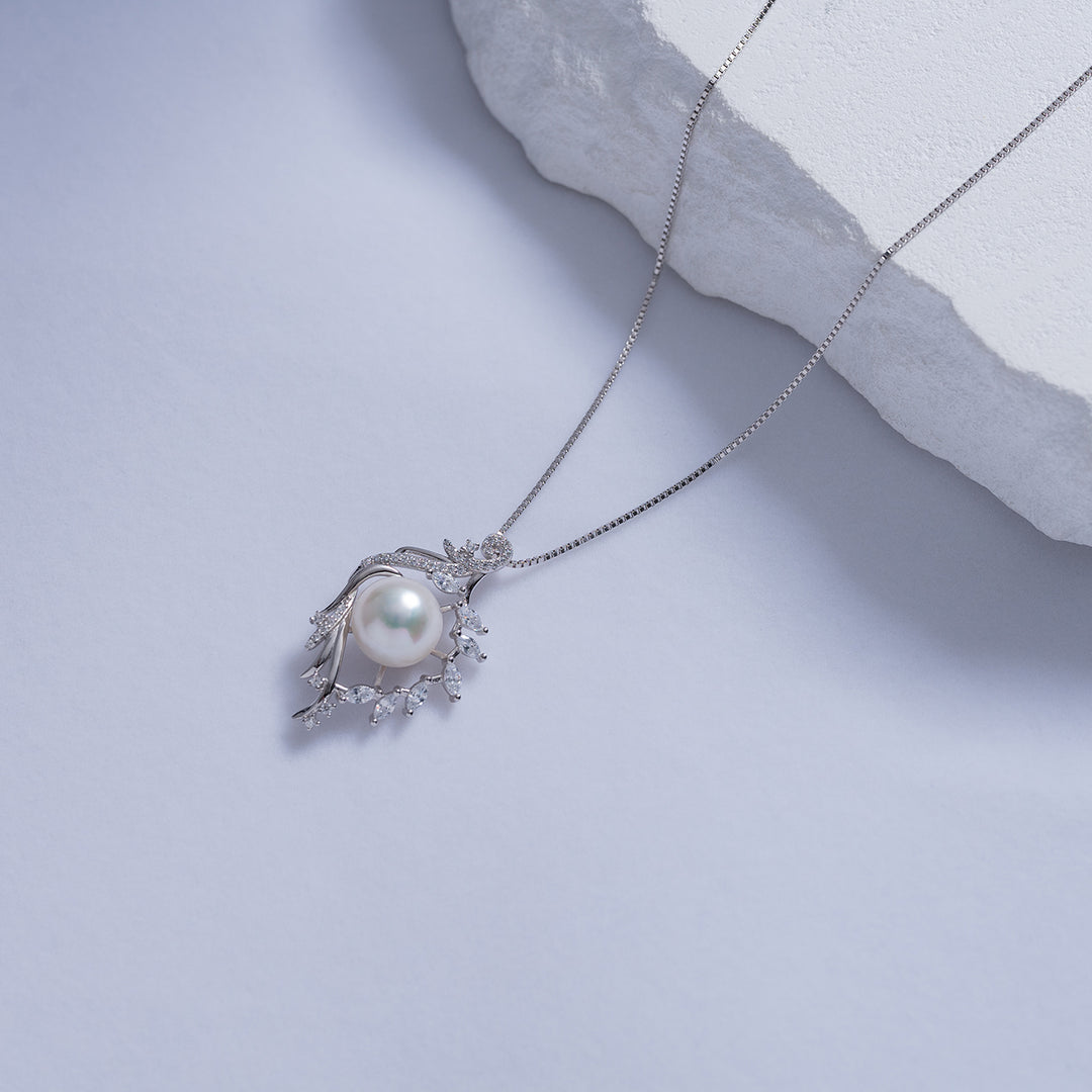 Mutiara air tawar, zirconia kubik, perak sterling berlapis emas, reka bentuk daun di sekitar mutiara yang mengingatkan kepada Dewi-dewi, kecantikan yang rapuh, halus dan bergaya. Sesuai untuk sebarang majlis istimewa.