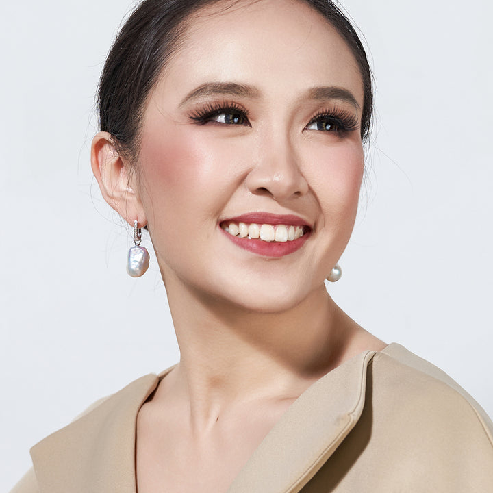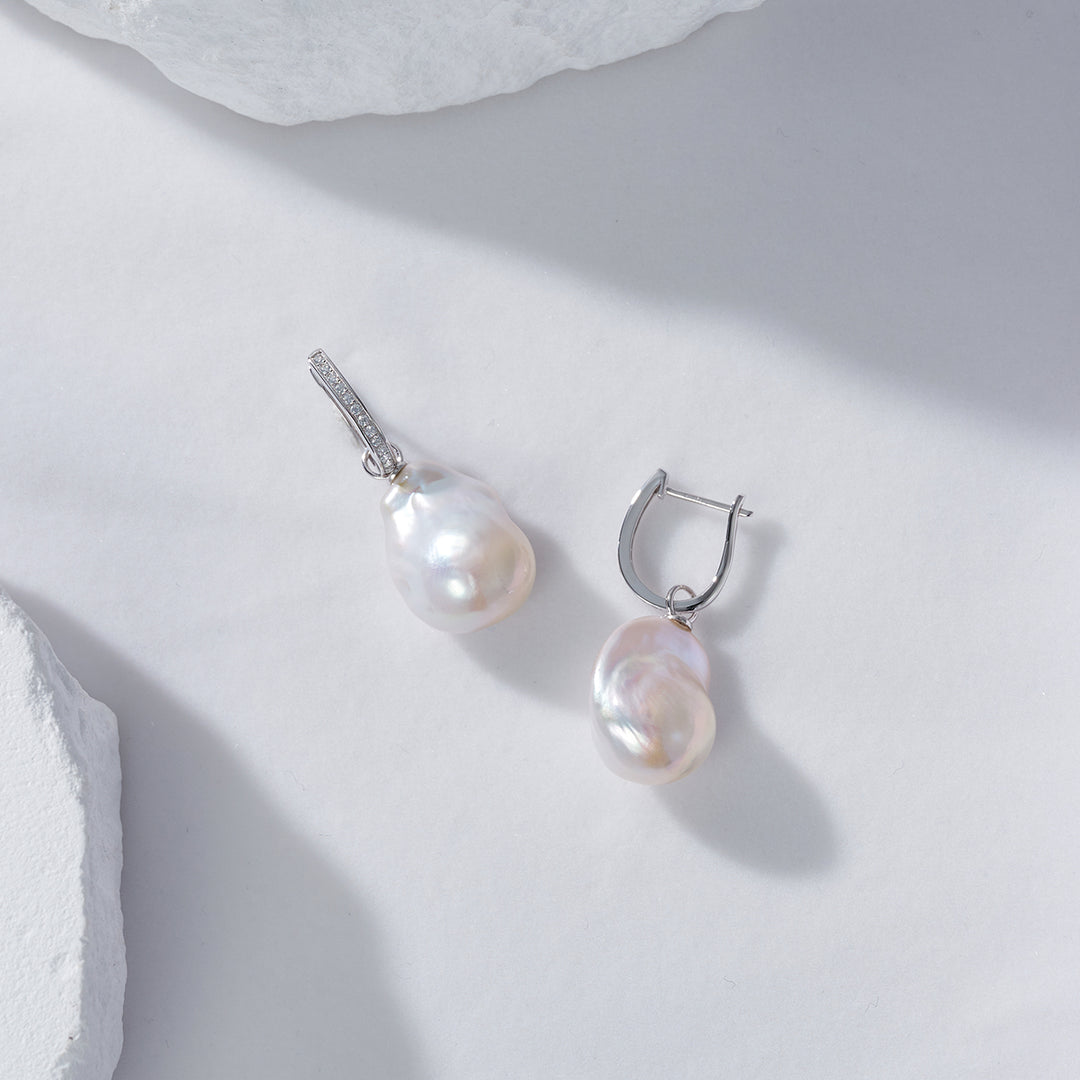 Sepasang Anting-anting Mutiara Baroque yang unik, direka bentuk supaya boleh ditanggalkan, memberikan anda gaya pemakaian dua hala untuk sebarang acara istimewa atau kasual.