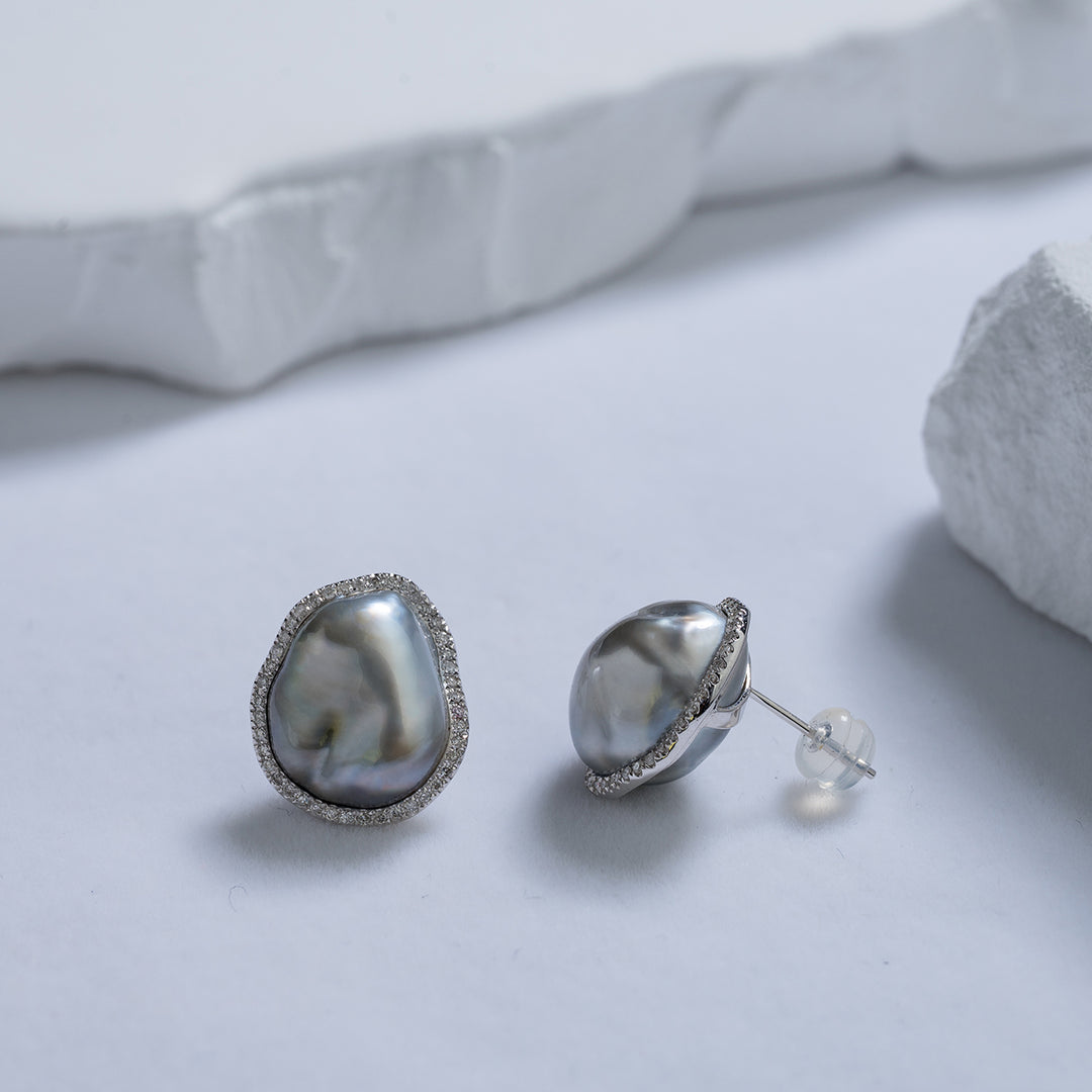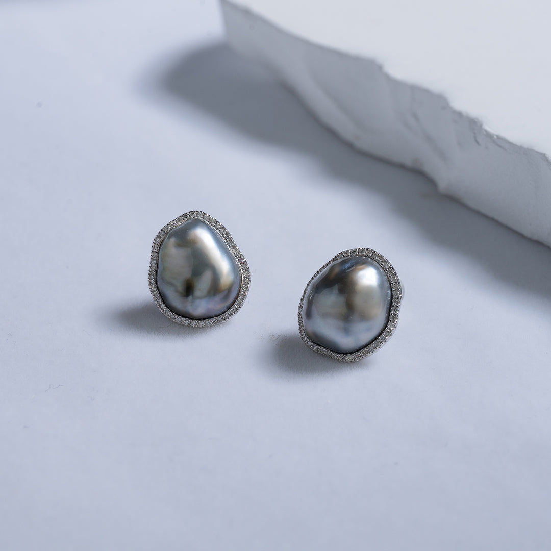 18K Diamond Tahitian Keshi Pearl Earrings KE00117 - PEARLY LUSTRE