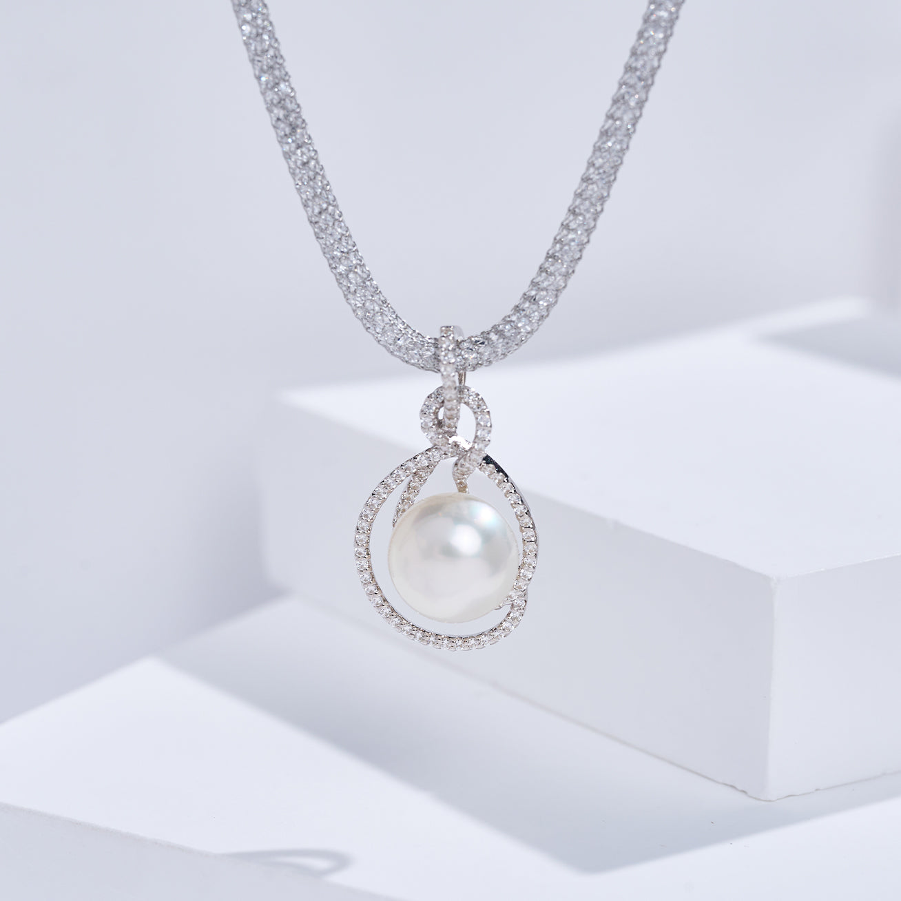 Kalung Mutiara Putih Laut Selatan Kilauan Teratas WN00909