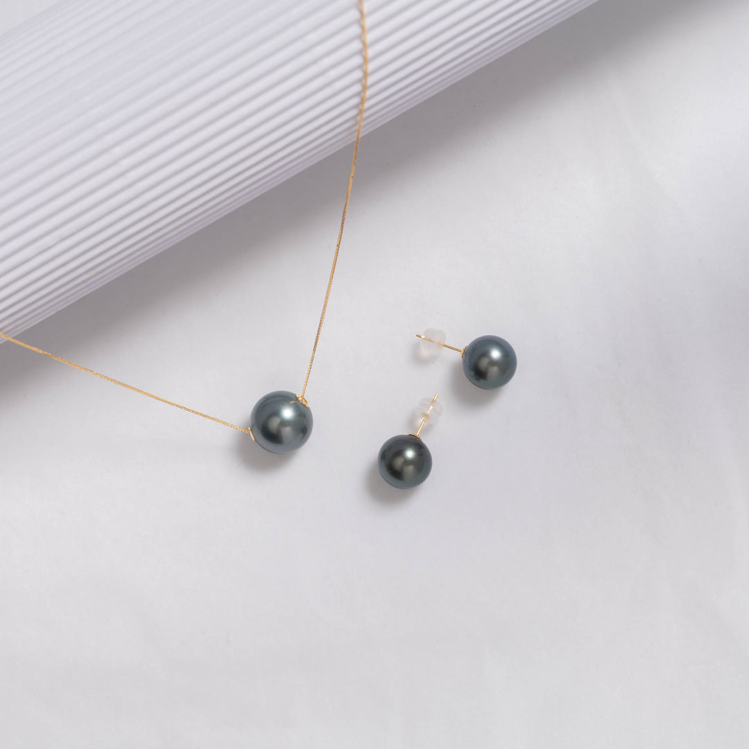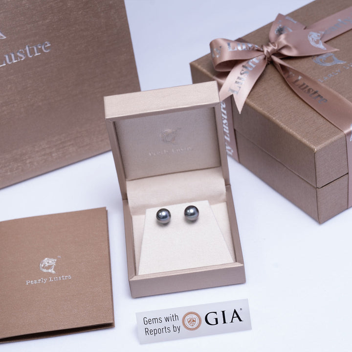 Elegant 18K Gold Top Grade Tahitian LAGOON Pearl Stud Earrings KE00015 - PEARLY LUSTRE