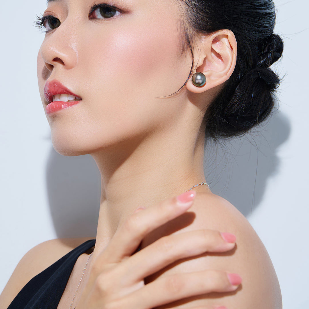 18K Gold Top Lustre Tahitian Pearl Stud Earrings KE00186 - PEARLY LUSTRE