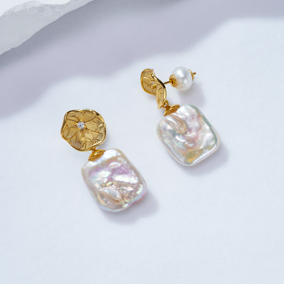 Mutiara air tawar unik ini dalam setting persegi akan sentiasa kelihatan sofistikated, menjadikannya teman yang tidak dapat dilupakan untuk sebarang ensemble. Sempurna untuk setiap hari atau majlis istimewa, anting-anting yang tidak lapuk oleh zaman ini akan meningkatkan penampilan anda.