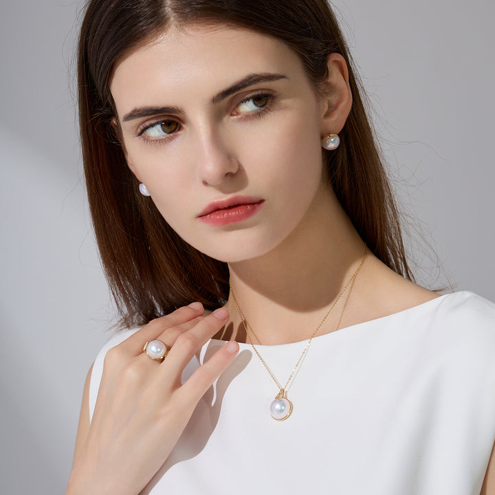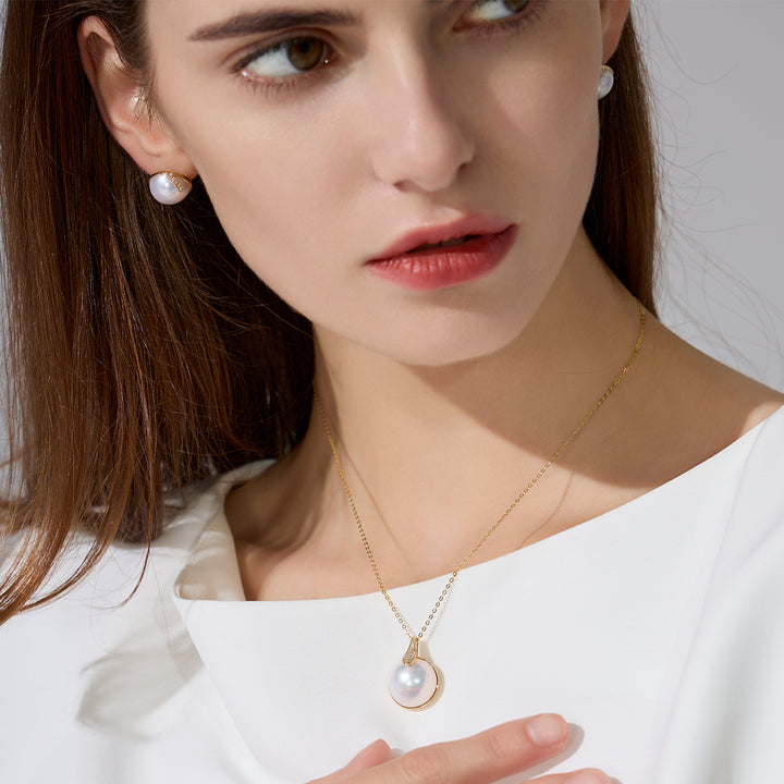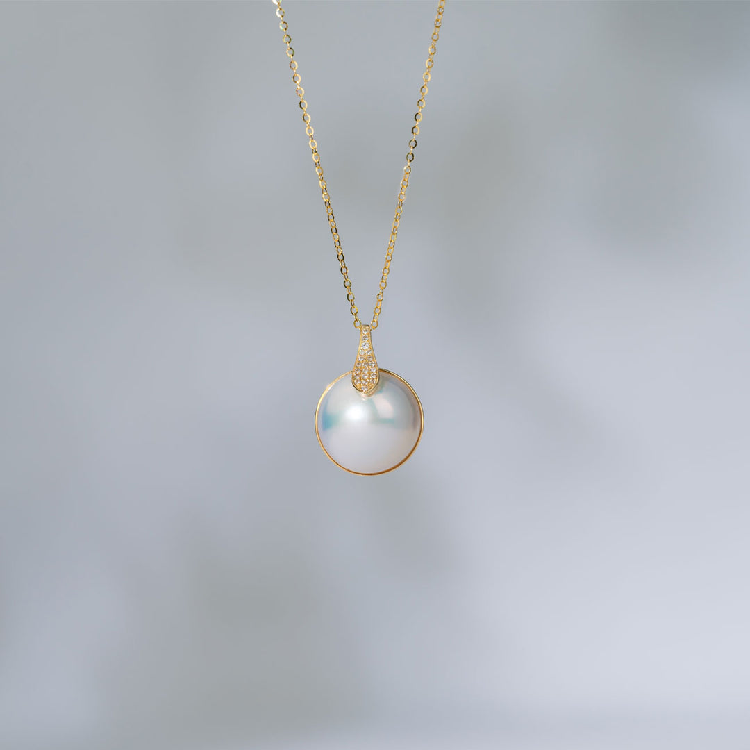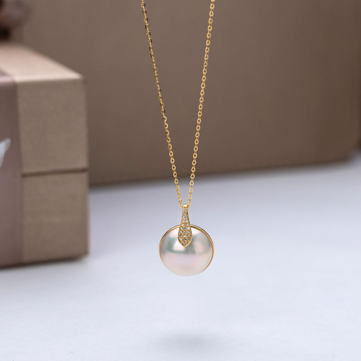 18k Solid Gold Diamond Edison Mabe Pearl Necklace KN00151 - PEARLY LUSTRE