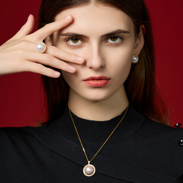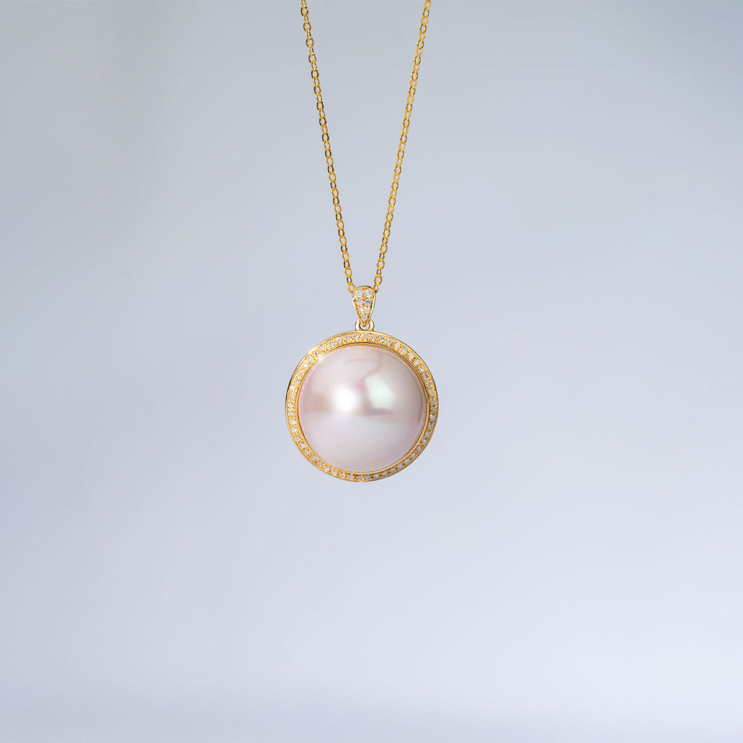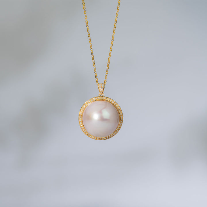 18k Solid Gold Diamond Edison Mabe Pearl Necklace KN00152 | Si Dian Jin - PEARLY LUSTRE