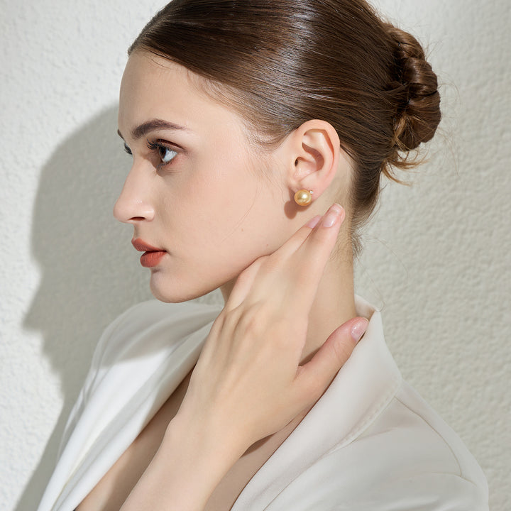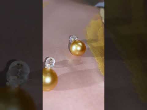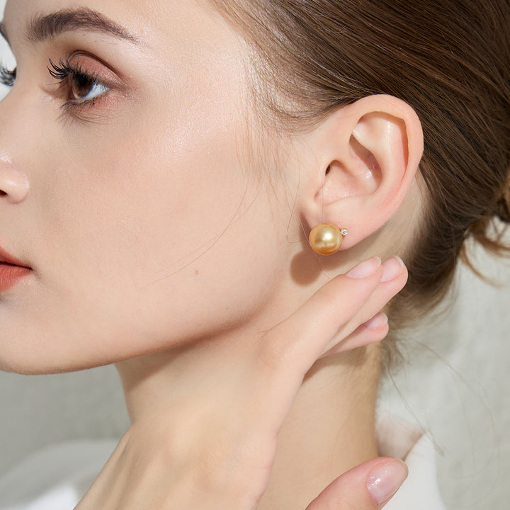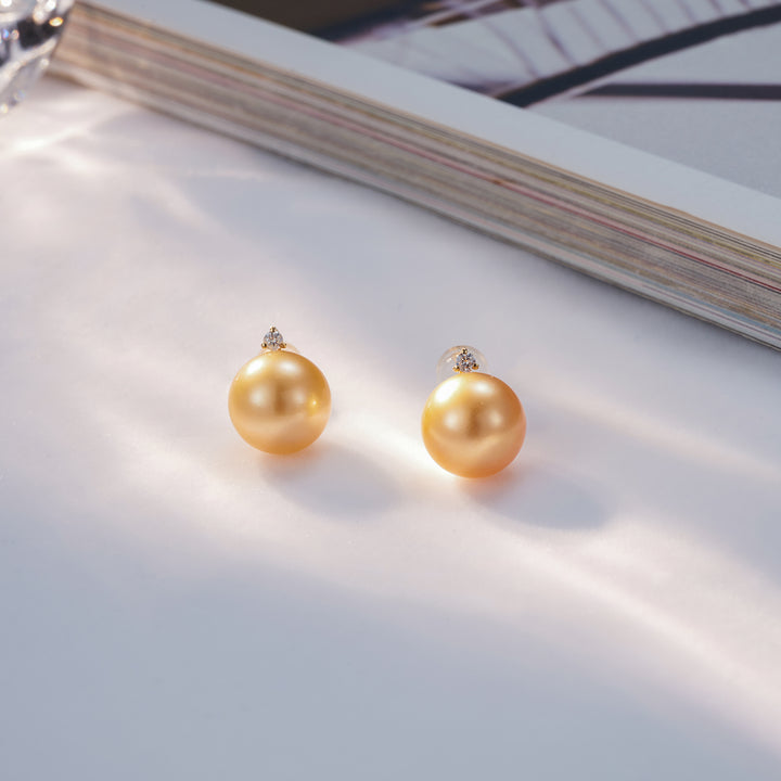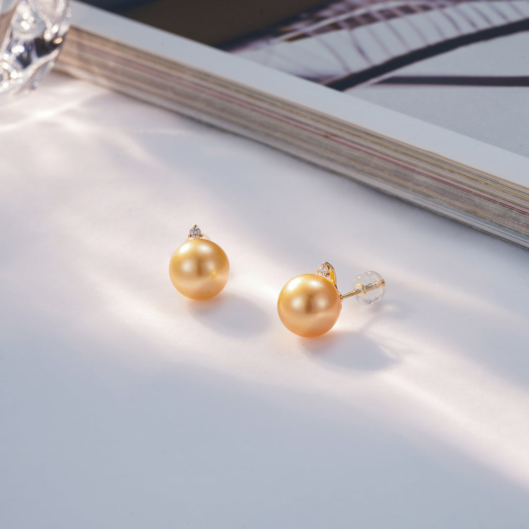 18K Gold Diamond South Sea Golden Pearl Earring KE00131 - PEARLY LUSTRE