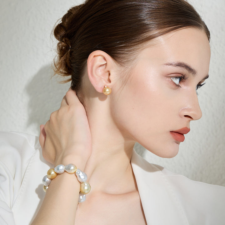 Menampilkan yang jarang Mutiara Laut Selatan, anting-anting ini melambangkan keanggunan, kekuatan, dan kemakmuran.