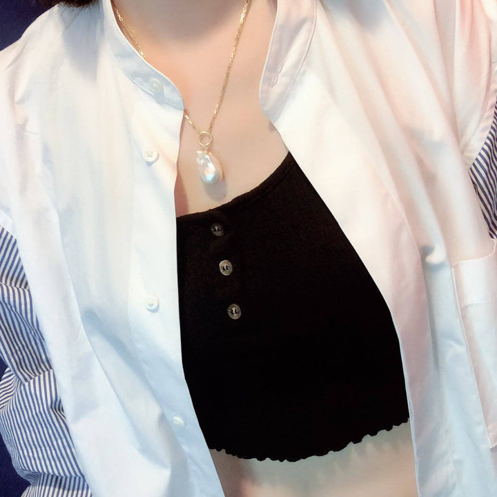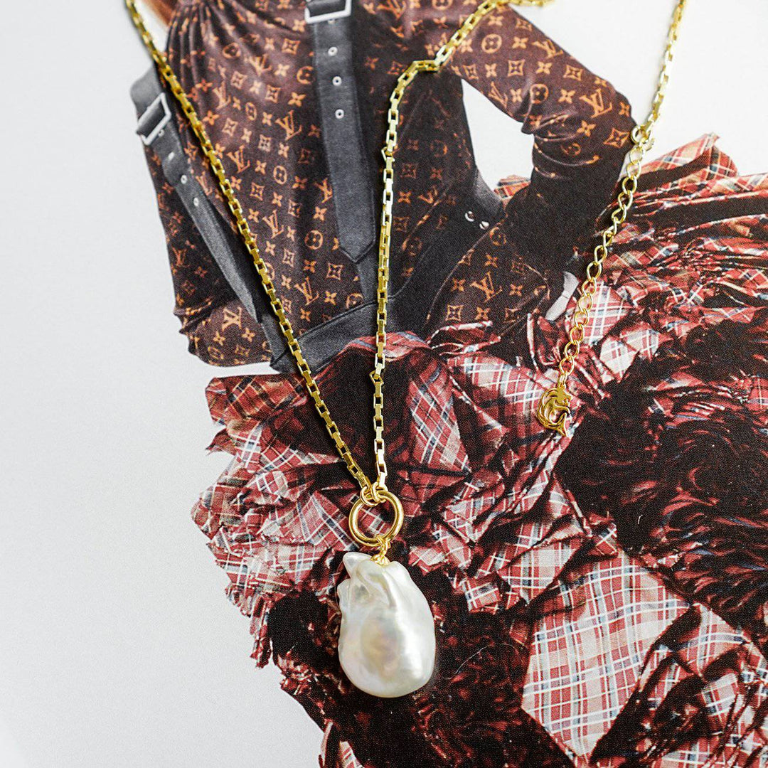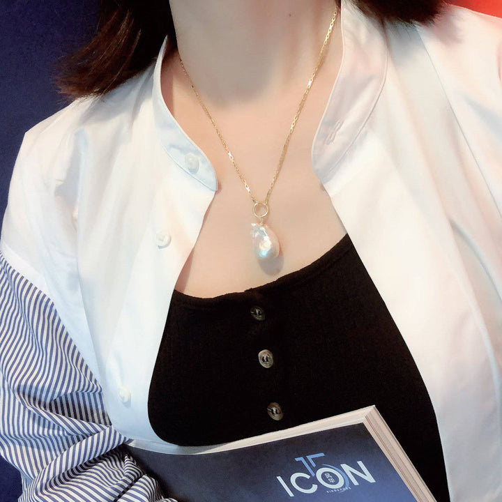Sebuah pernyataan rantai mutiara, menawan dalam kecantikannya, diilhamkan oleh lautan yang dalam, pakai untuk menunjukkan leher anda yang cantik.
