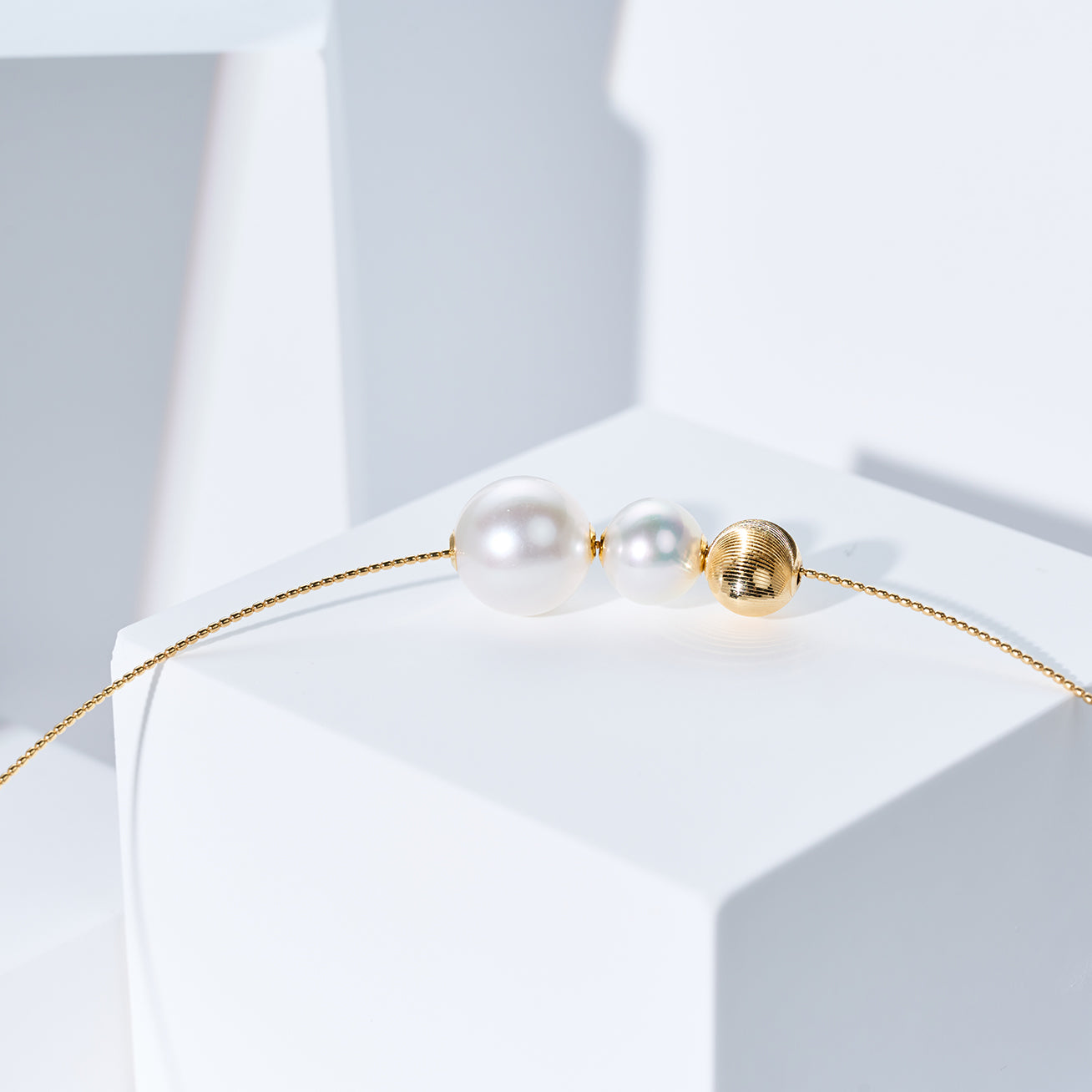 Rantai Leher Mutiara Putih Laut Selatan Emas 18k KN00384