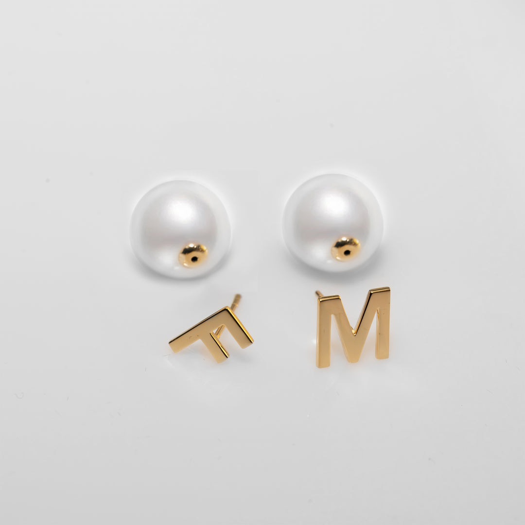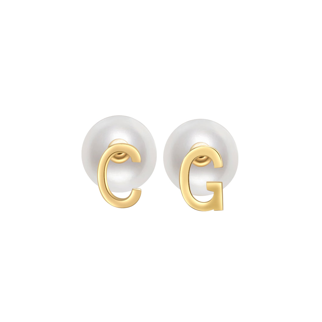 Personalized Alphabet 18K Solid Gold Edison Pearl Earrings KE00013 - PEARLY LUSTRE