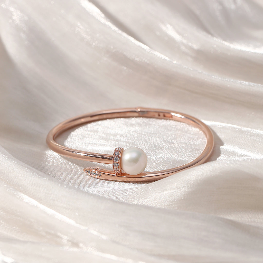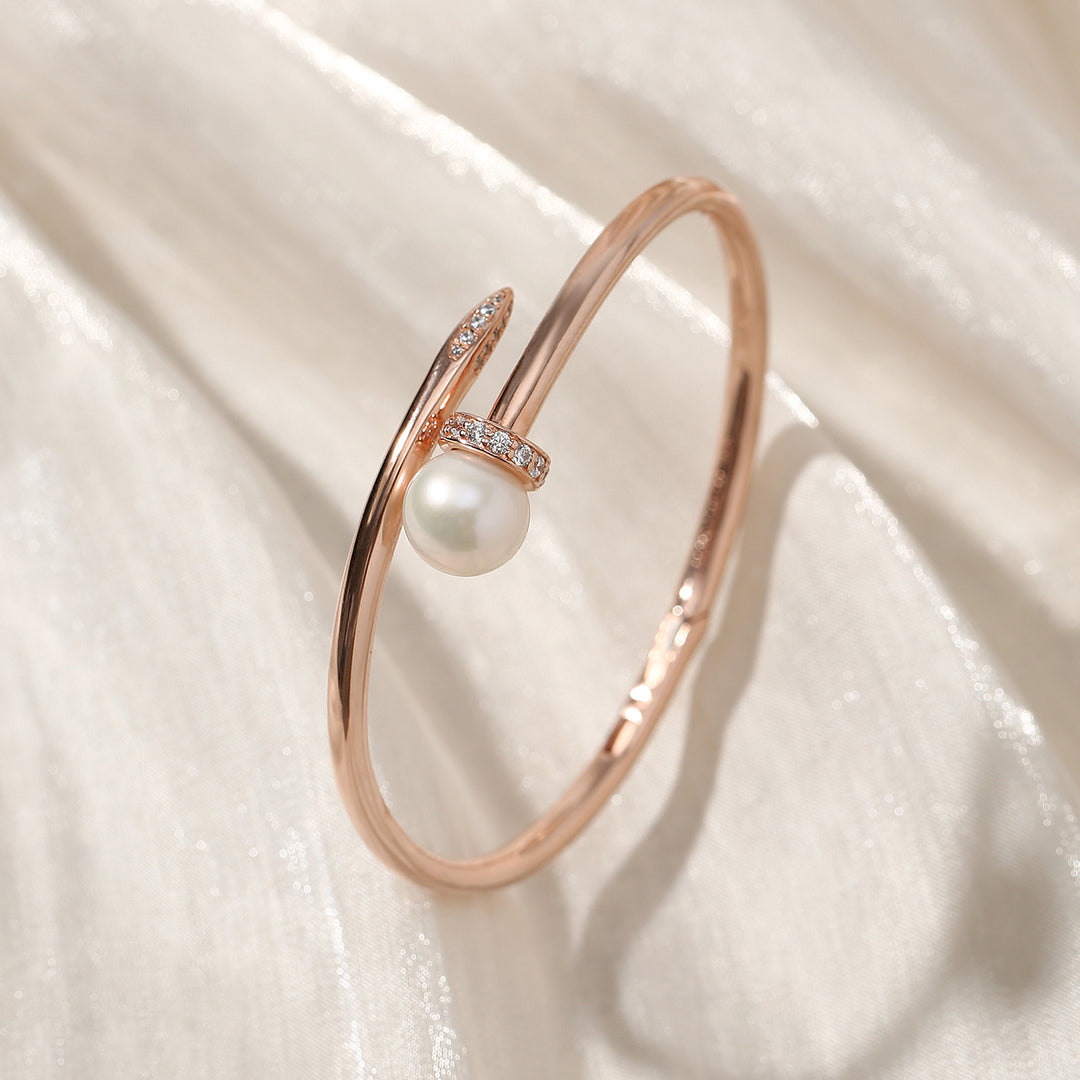 Gelang mutiara bergaya ini memancarkan keanggunan dan pesona. Menampilkan mutiara Edison dengan kilauan terbaik, ia menggabungkan gaya dan keanggunan dengan mudah. Reka bentuk pembukaan musim bunga memastikan pemakaian yang mudah, menjadikannya praktikal dan sofistikated.