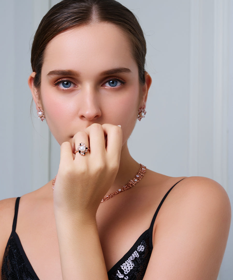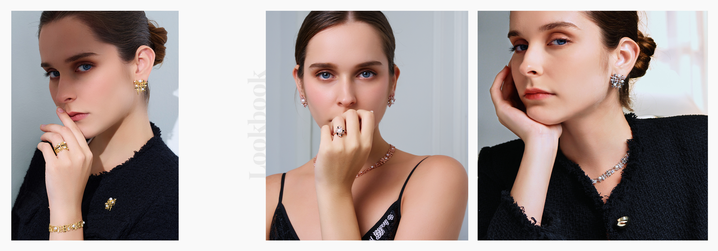 Diilhamkan oleh tekstur abadi tweed klasik, koleksi ini menganyam struktur dan keanggunan ke dalam bentuk perhiasan yang halus. Sebuah penghormatan moden kepada warisan busana tinggi, dibayangkan semula dalam logam berharga dan mutiara berkilau.