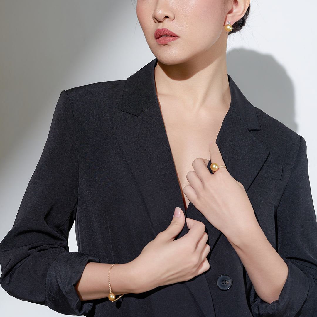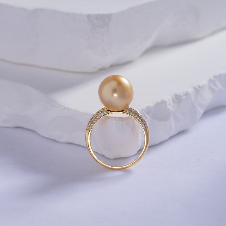 18K Solid Gold South Sea Golden Pearl Ring KR00017 - PEARLY LUSTRE