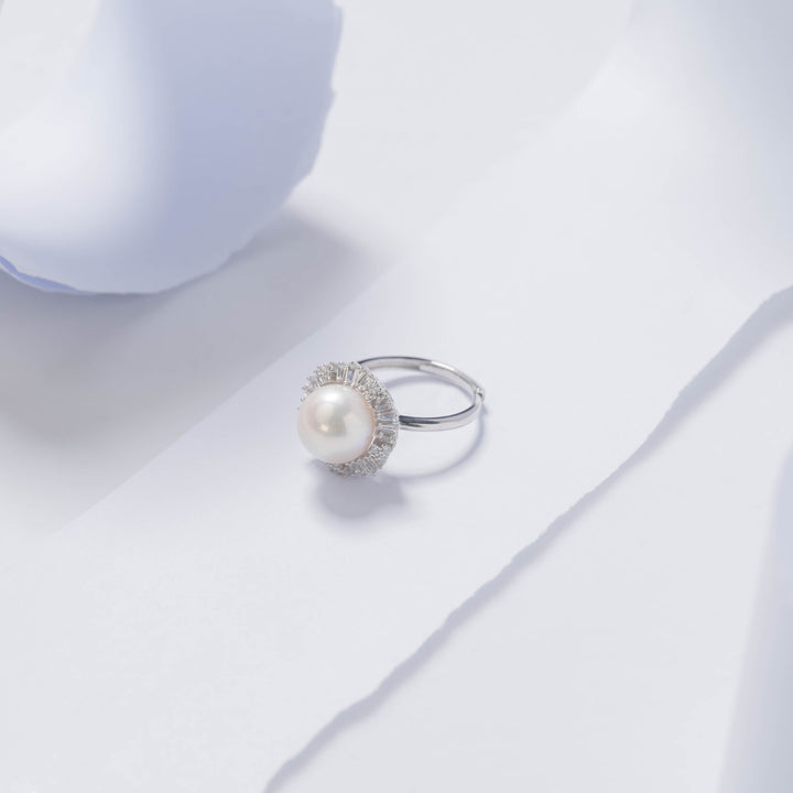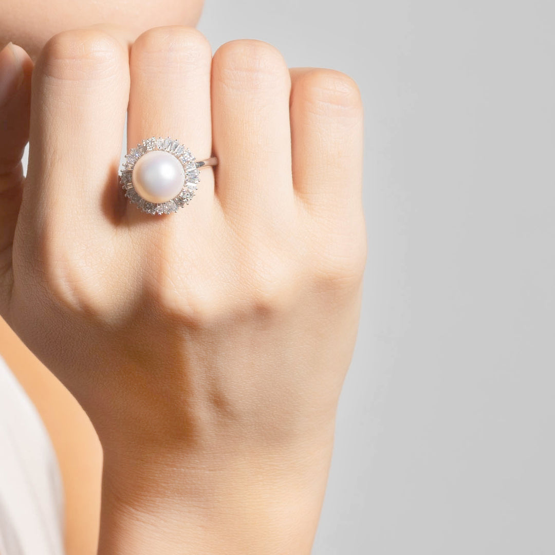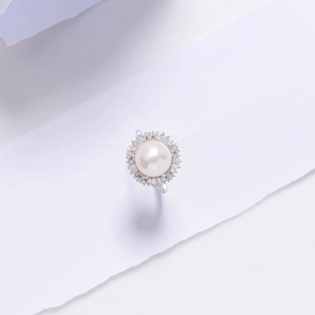 Cincin Mutiara yang menakjubkan ini direka untuk kesempurnaan dengan mutiara Edison penggredan teratas dan dikelilingi dengan zirkonia padu gred teratas, menjadikan barang kemas yang benar-benar elegan dan anggun. Kualiti mutiara yang berkilauan dan murni memastikan penampilan yang mewah dan tahan lama, manakala zirkonia kubik menambah kilauan yang mempesonakan untuk menyerlahkan kecantikan semula jadi anda.