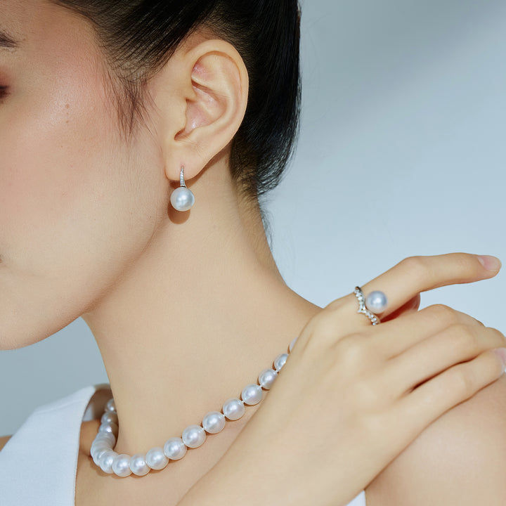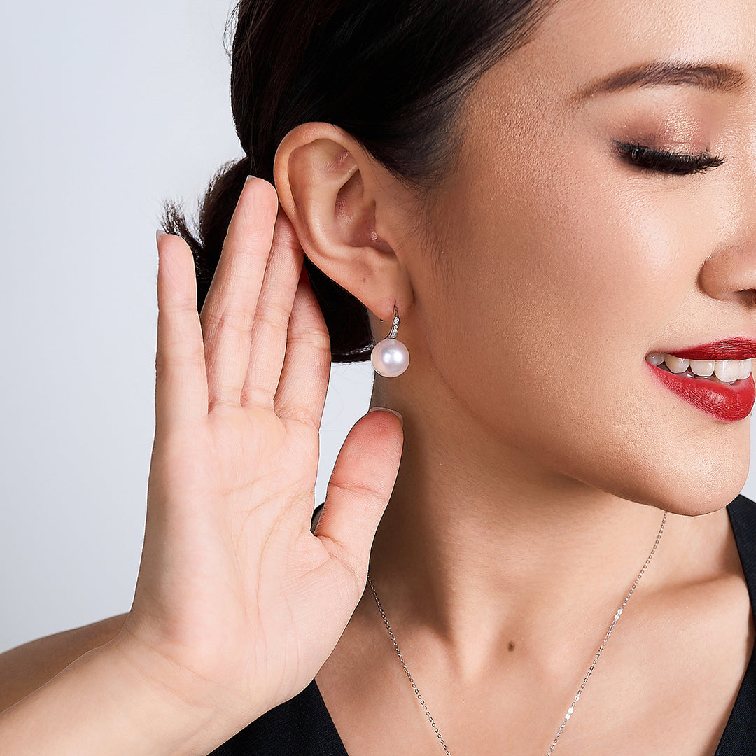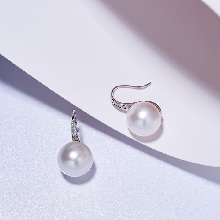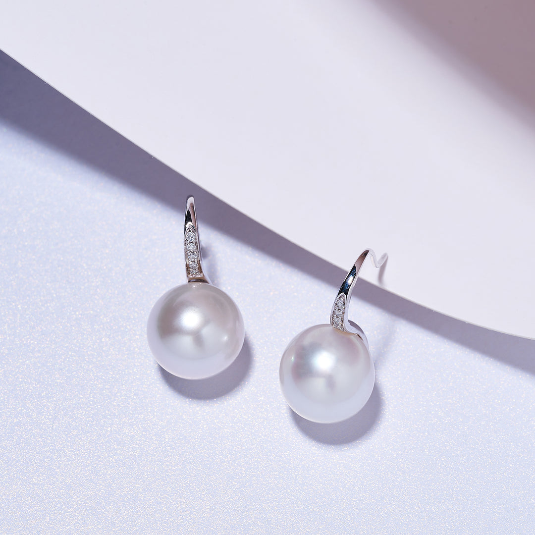 18k Solid Gold Diamond Australian White South Sea Pearl Earrings KE00200 - PEARLY LUSTRE