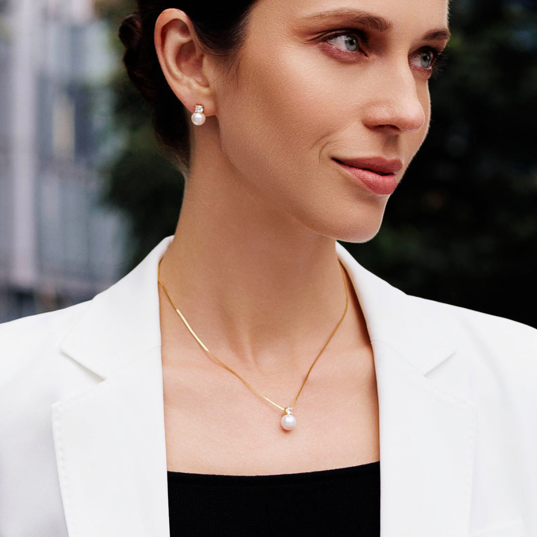 18K Emas Pepejal Berlian Hanadama Akoya Kalung Mutiara KN00279