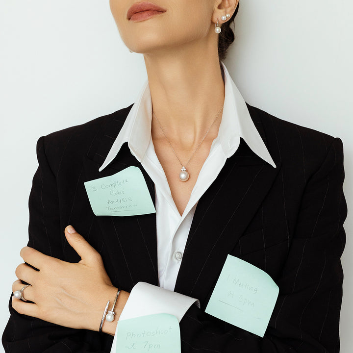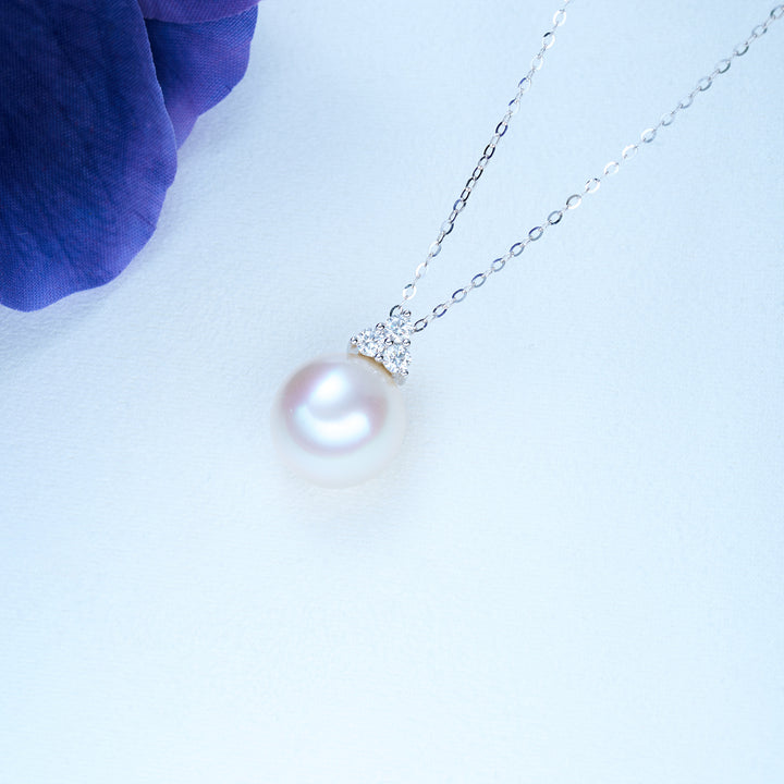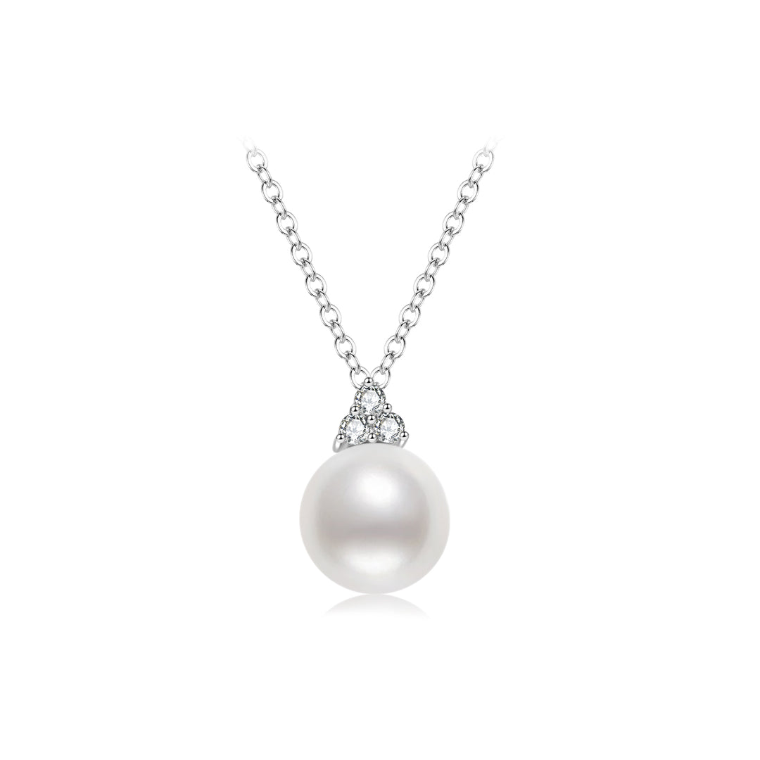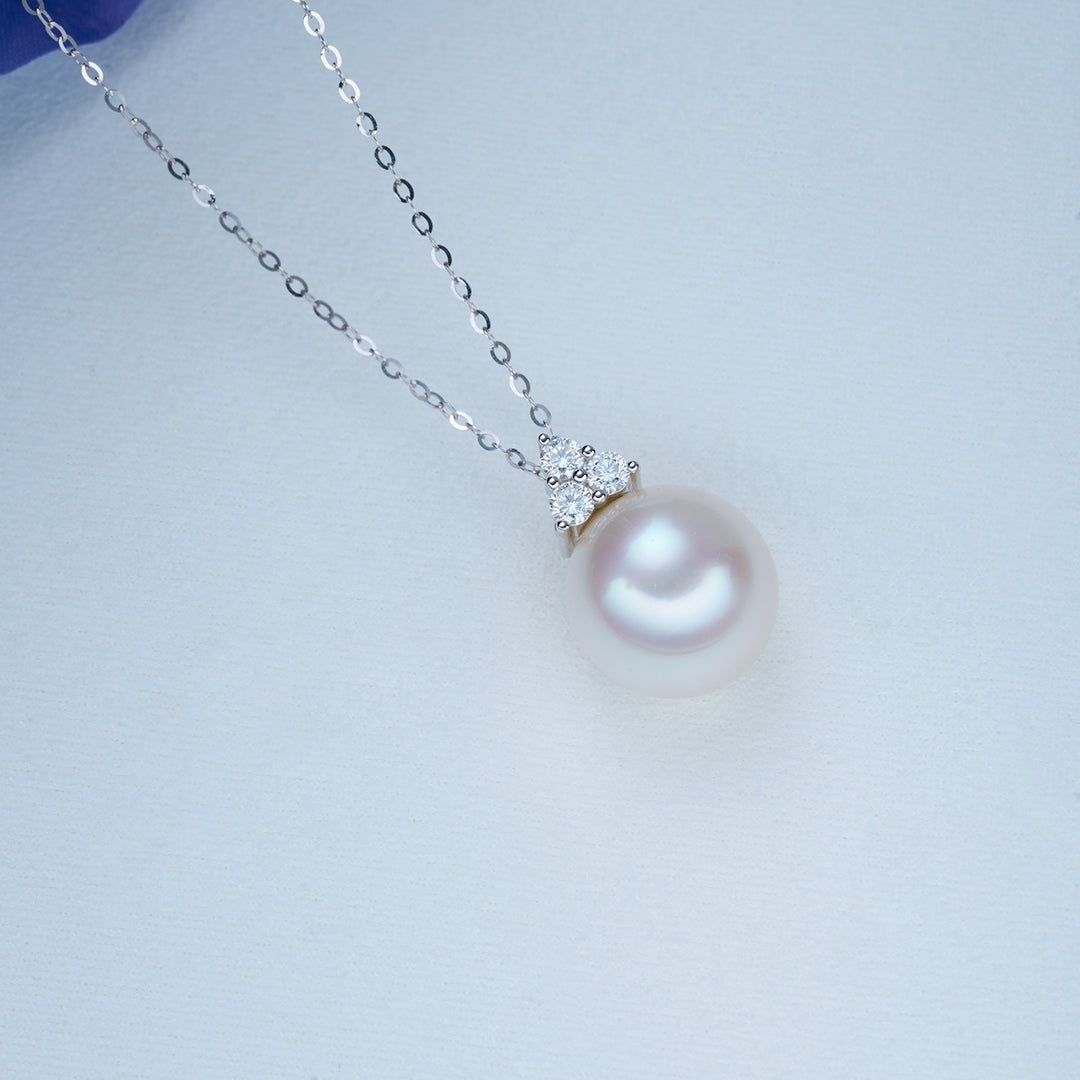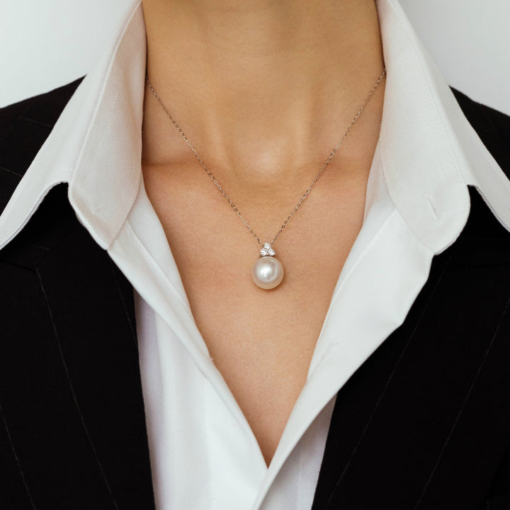 18K Solid Gold Diamond Australian White Saltwater Pearl Necklace KN00216 - PEARLY LUSTRE