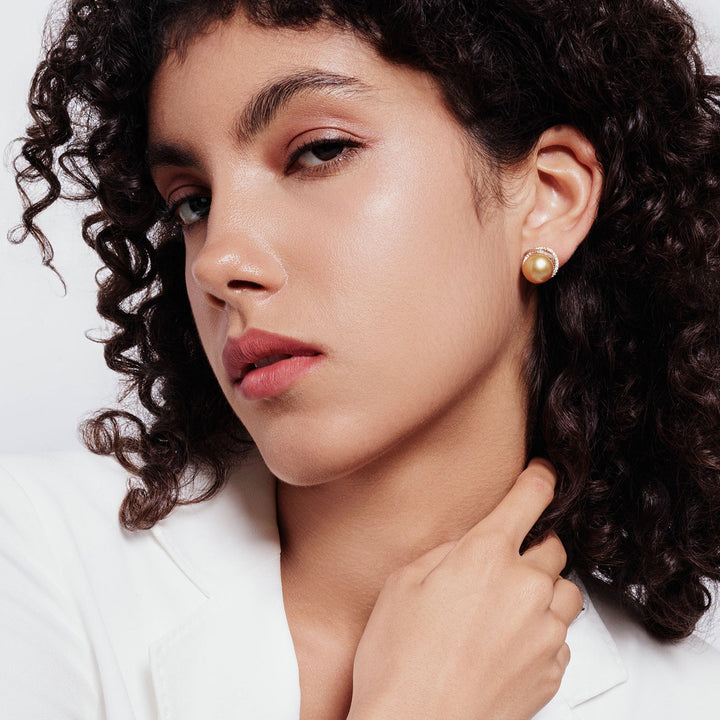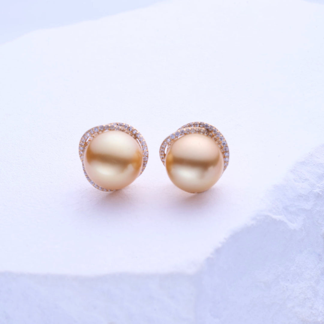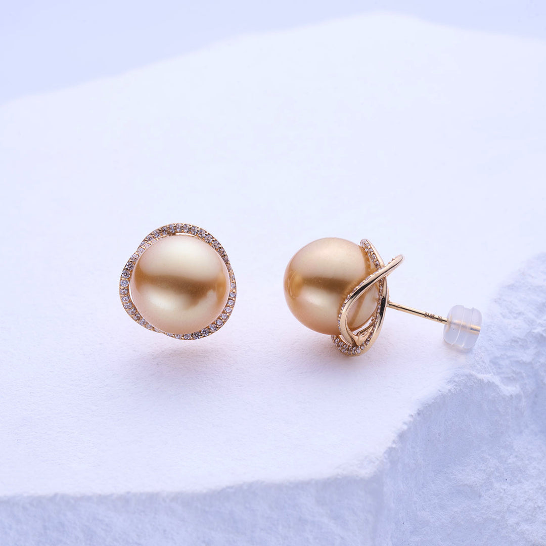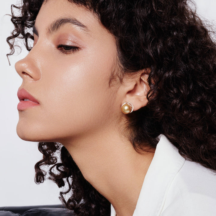 18K Solid Gold South Sea Golden Pearl Stud Earrings KE00237 - PEARLY LUSTRE