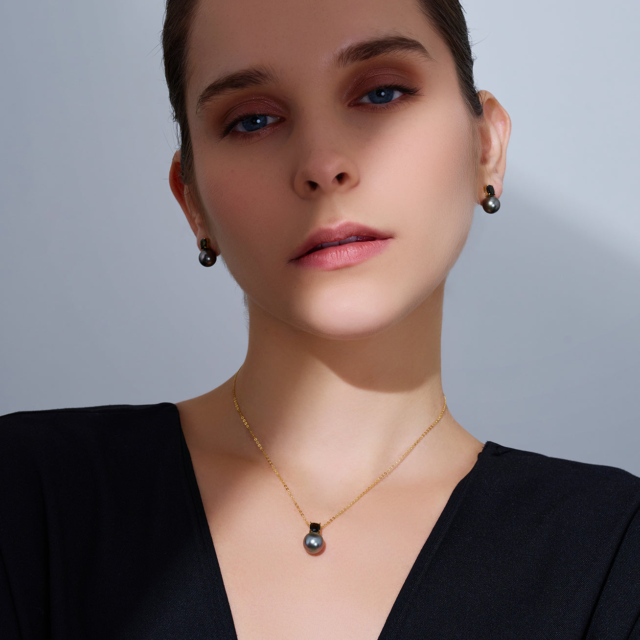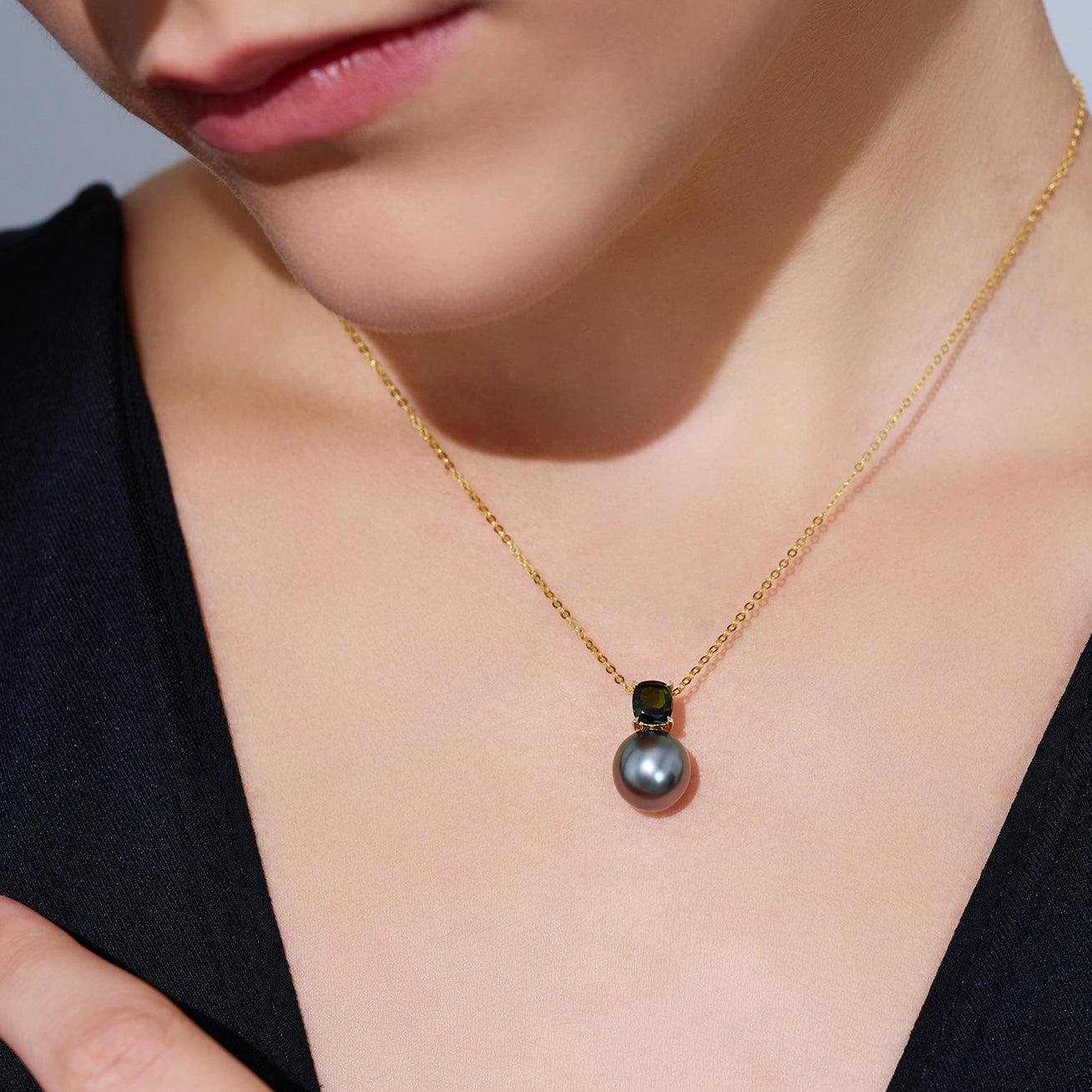18K Solid Gold Saltwater Tahitian Pearl Necklace KN00346 - PEARLY LUSTRE