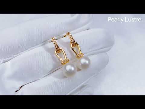 ต่างหูมุกห้อยประดับเพชรคิวบิกเซอร์โคเนียเป็นประกาย ประดับด้วยไข่มุกแท้แวววาว การเคลื่อนไหวที่นุ่มนวลทำให้เหมาะสำหรับค่ำคืนที่คุณเต้นรำ