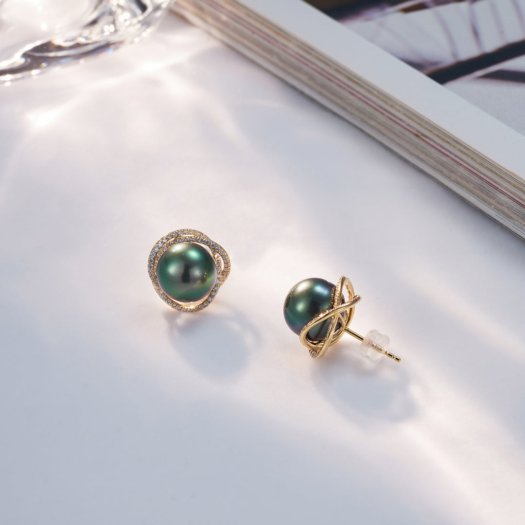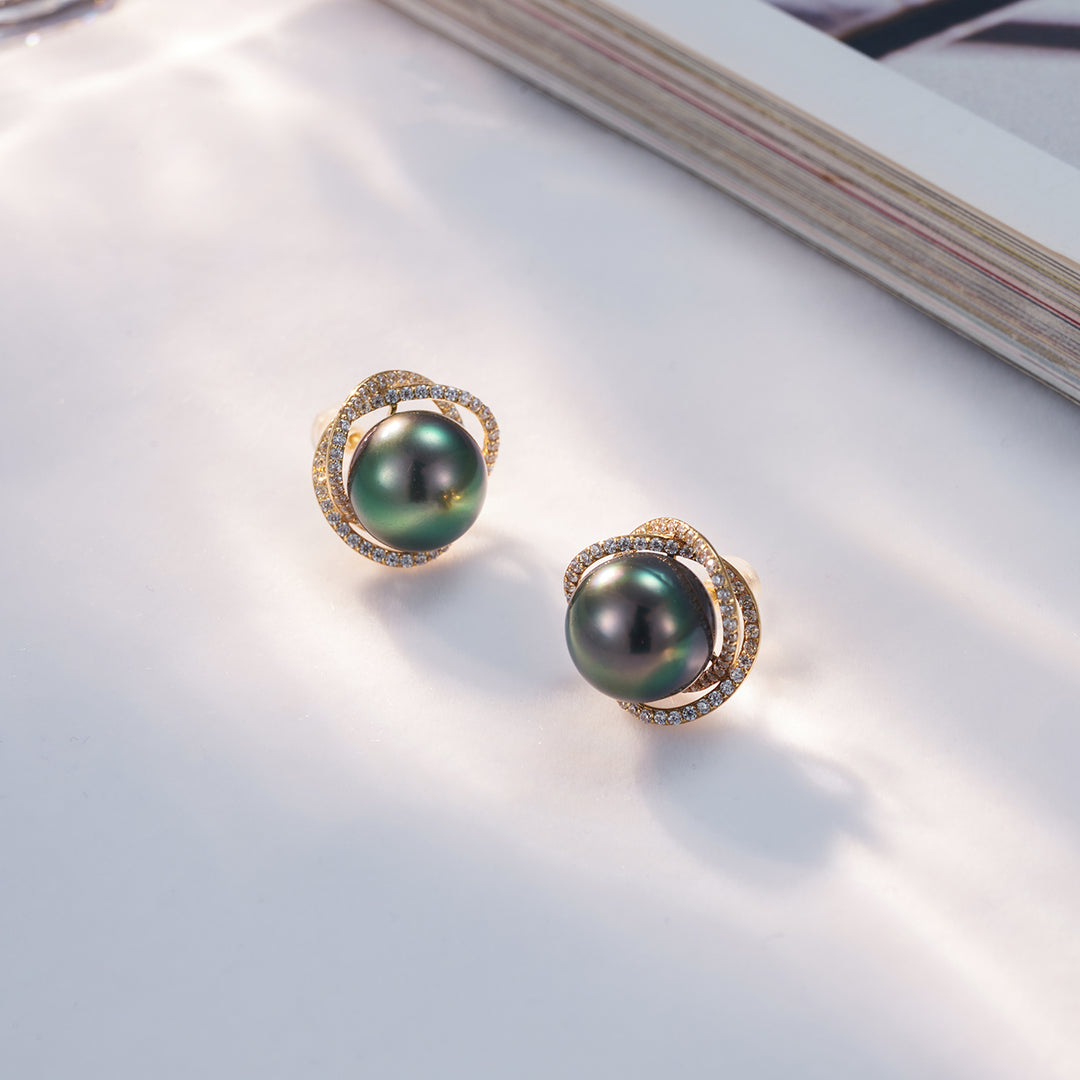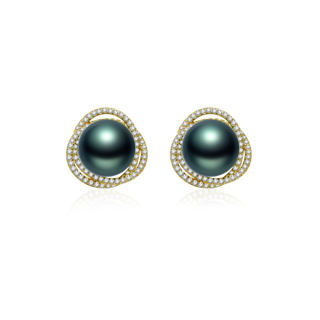 18K Gold Tahitian Pearl Earrings KE00130 - PEARLY LUSTRE