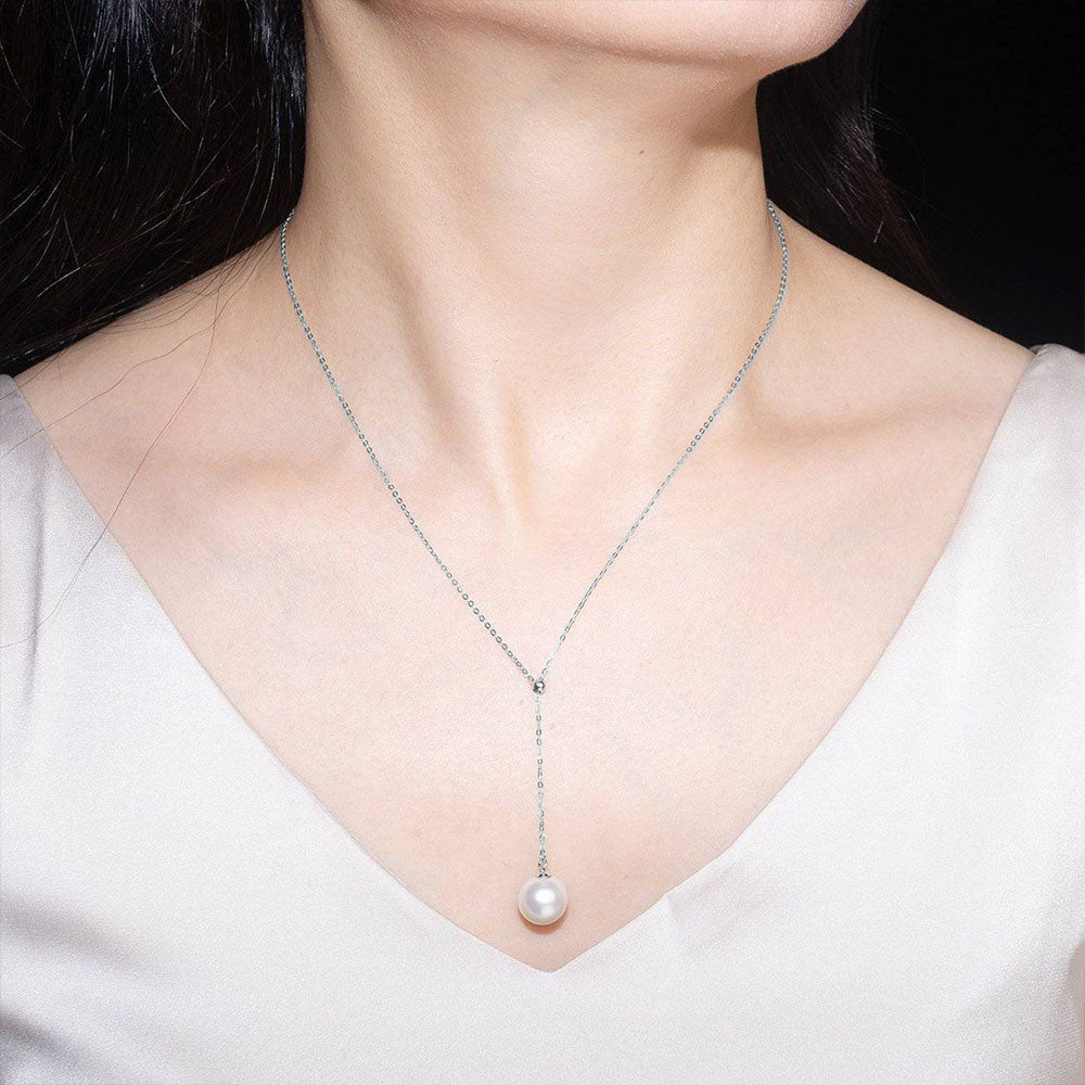 สร้อยคอมุก Lariat ประดับด้วย มุกน้ำจืดแวววาว มีเสน่ห์แบบห่วงเล็กๆ เข้ากับคอเสื้อที่ลึกลงไปได้อย่างลงตัว คุณจะสังเกตเห็นเอฟเฟกต์นี้ได้ในเครื่องประดับที่เรียบง่ายแต่หรูหราชิ้นนี้เมื่อใส่คู่กับสายเดี่ยว