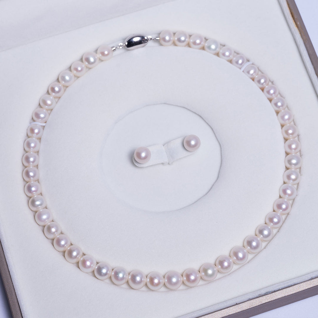 Top Grade Pearl Necklace + Earrings Set WS00090 - PEARLY LUSTRE