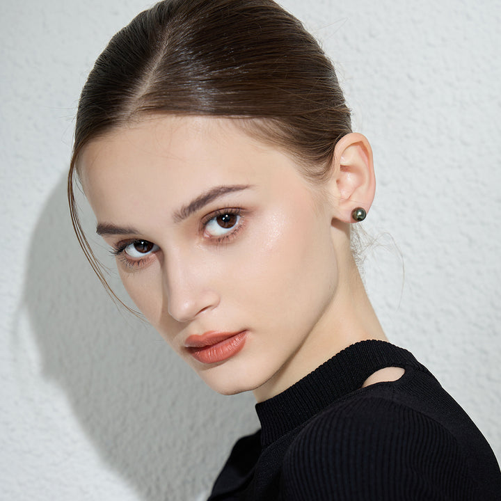 Elegant 18K Gold 2nd Grade Tahitian Pearl Stud Earrings KE00016 - PEARLY LUSTRE