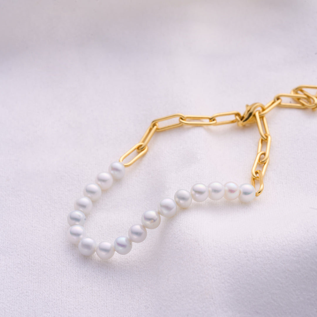 เตรียมพร้อมสำหรับทุกที่ที่วันพาคุณไปด้วย สร้อยข้อมือไข่มุก ขนาด 4-5 มม. นี้! เหมาะสำหรับผู้หญิงที่กล้าหาญและรักการสำรวจ สร้อยข้อมือนี้จะเพิ่มความมีสไตล์และความซับซ้อนตั้งแต่เช้าจนถึงค่ำ!