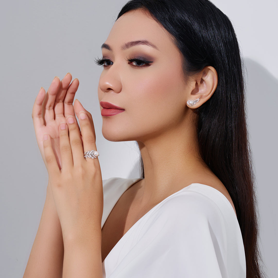 สร้างสรรค์ด้วยไข่มุก Akoya ชั้นเลิศจากญี่ปุ่น เพชรที่เปล่งประกาย และดีไซน์ขนนกที่สง่างาม เหมาะสำหรับผู้หญิงยุคใหม่ที่มีความสง่างาม