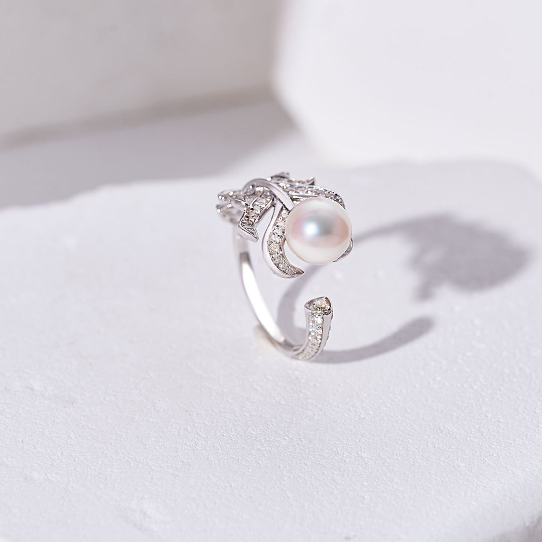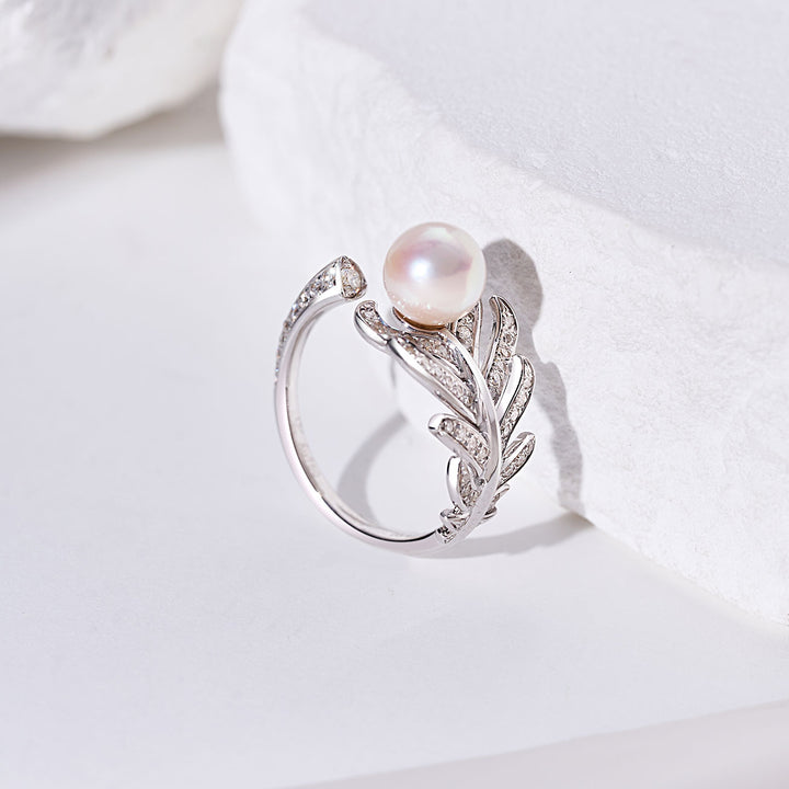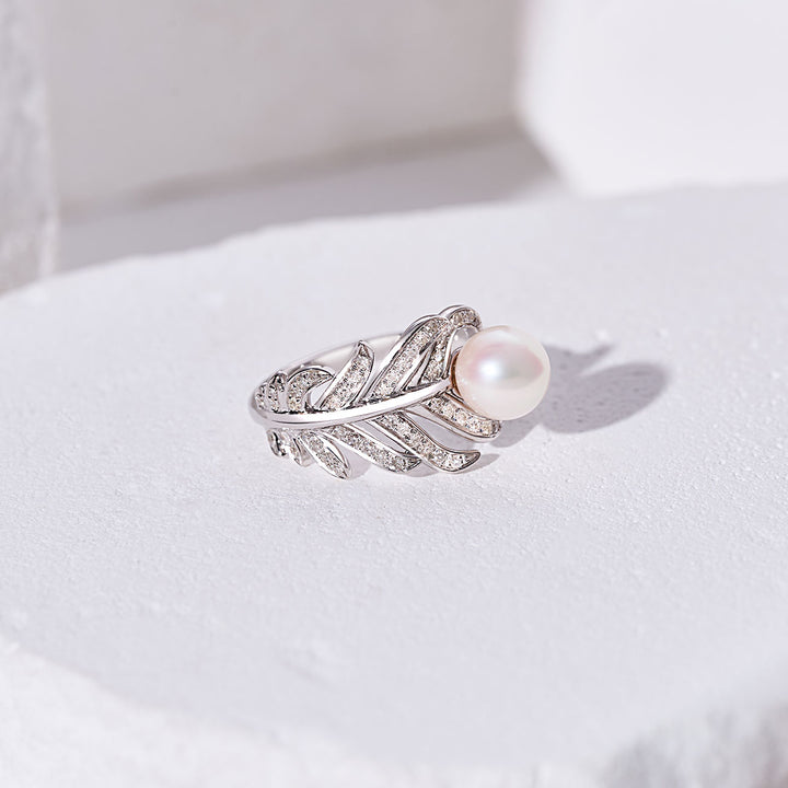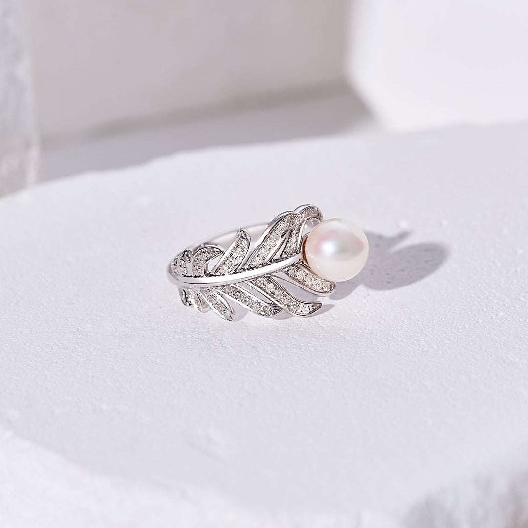 18K Solid Gold Diamond Akoya Hanadama Pearl Ring KR00112 | FEATHER - PEARLY LUSTRE