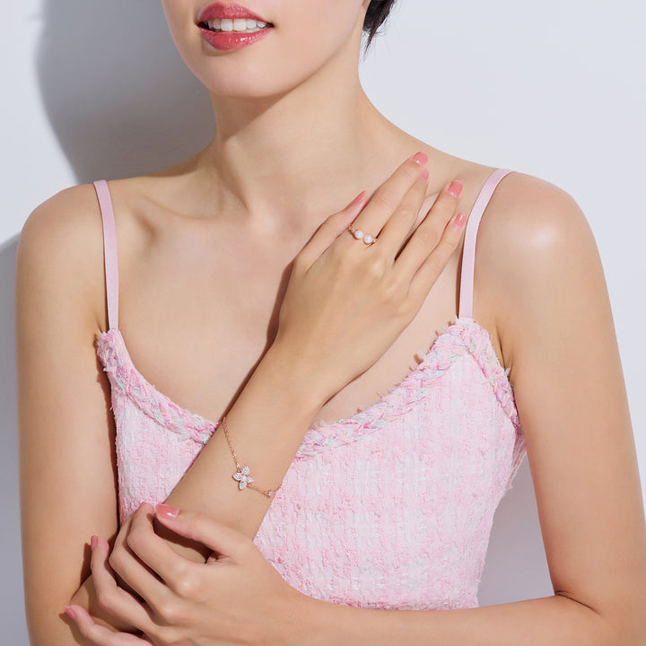 แหวนมุก นี้เป็นหนึ่งในแหวนที่ได้รับความนิยมมากที่สุด รูปทรงเกลียวที่เรียบง่ายปลายประดับด้วยมุกเงางาม คลาสสิกและง่ายต่อการสวมใส่ สวมใส่เดี่ยวหรือสวมซ้อนกันก็ได้