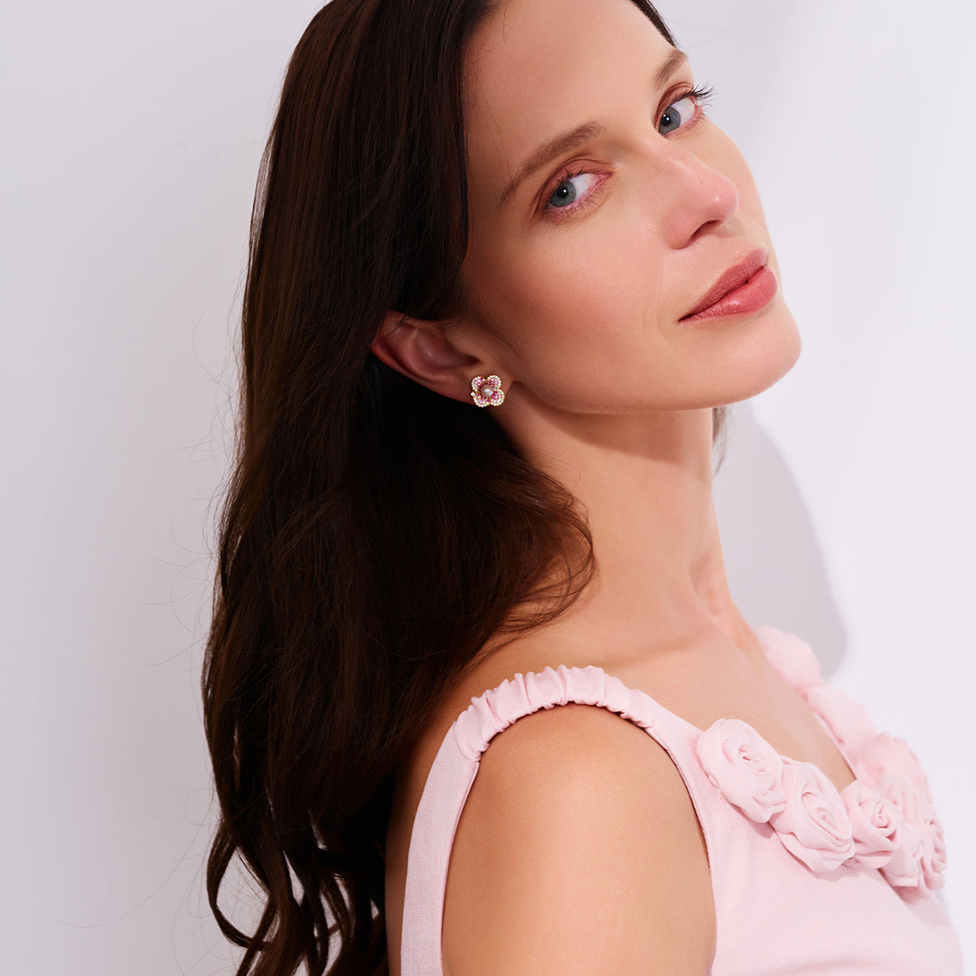 เพื่อให้พอดีอย่างสมบูรณ์แบบ ให้สอดเข็มอย่างเบา ๆ ผ่านรูที่ใหญ่กว่าบนตัวหยุดด้านหลัง จัดแนวอย่างระมัดระวังและกดเบา ๆ — ไม่ต้องใช้แรง! ดูแลเครื่องประดับชิ้นนี้อย่างพิถีพิถันเพื่อความงามรอบด้าน 360 องศาในทุกวัน