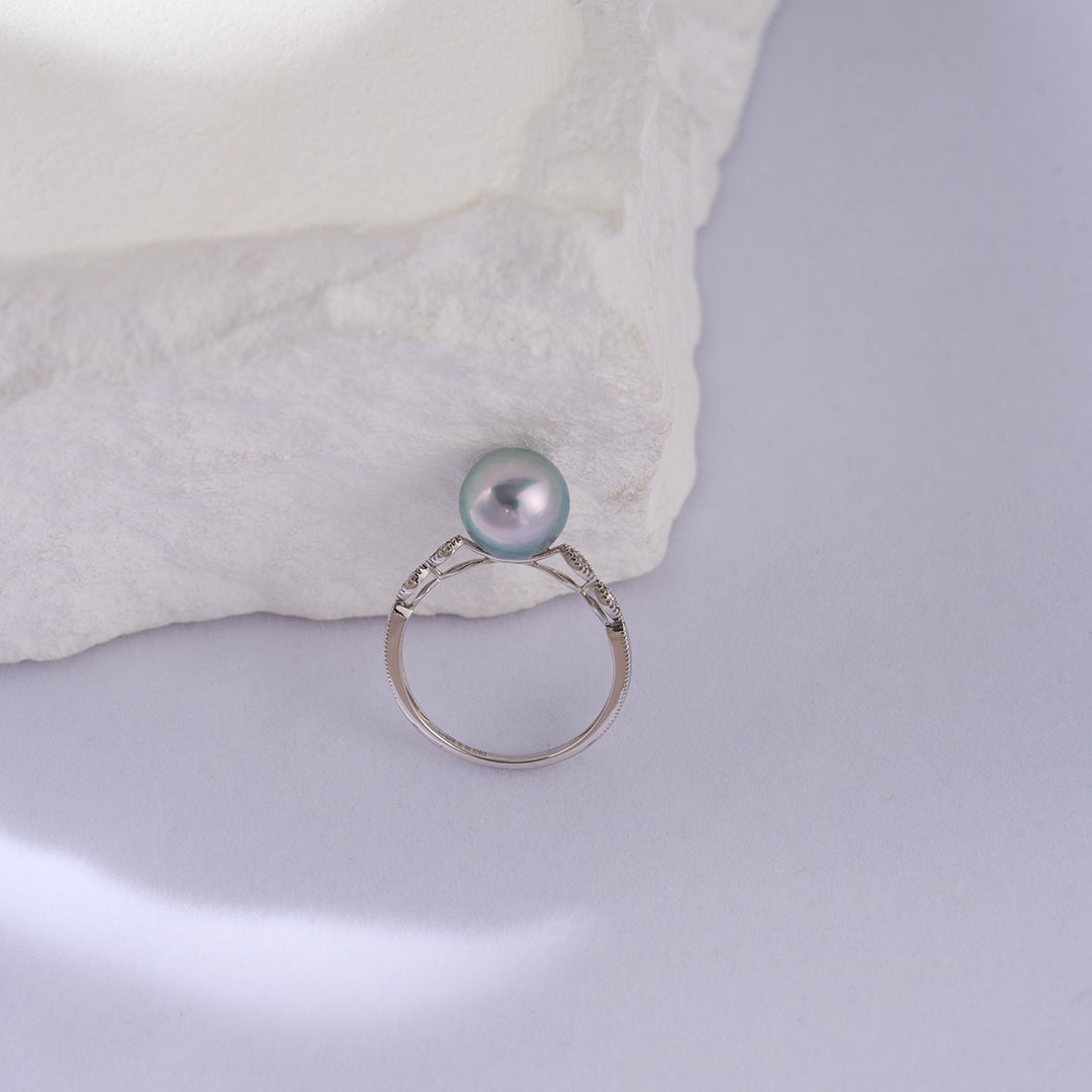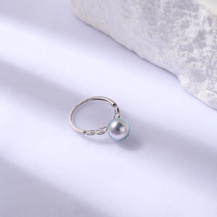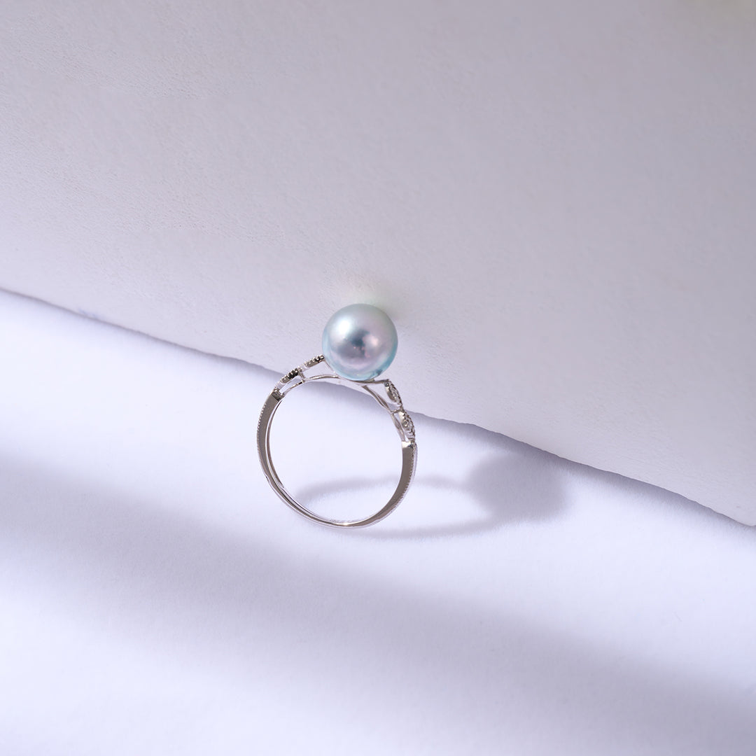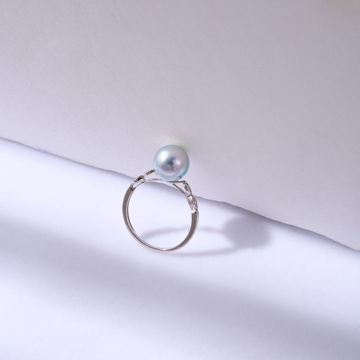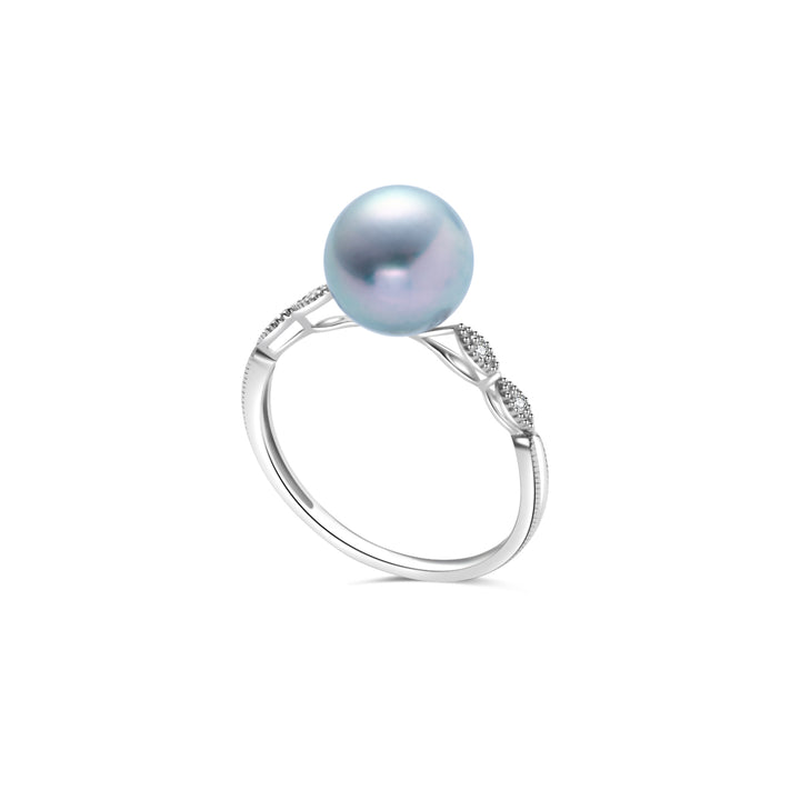 18K Gold Silver Blue Akoya Pearl Diamond Ring KR00106 - PEARLY LUSTRE