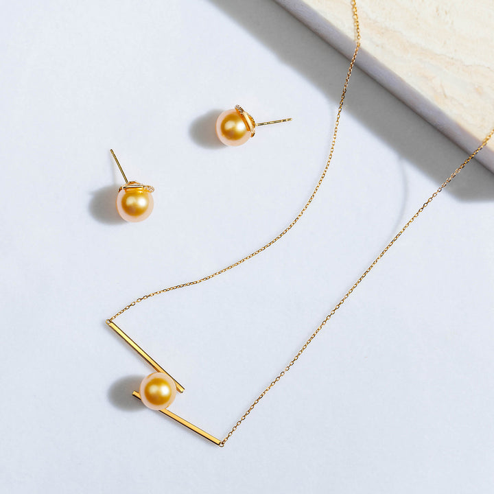 18K Solid Gold  Golden South Sea Pearl Necklace KN00028 - PEARLY LUSTRE