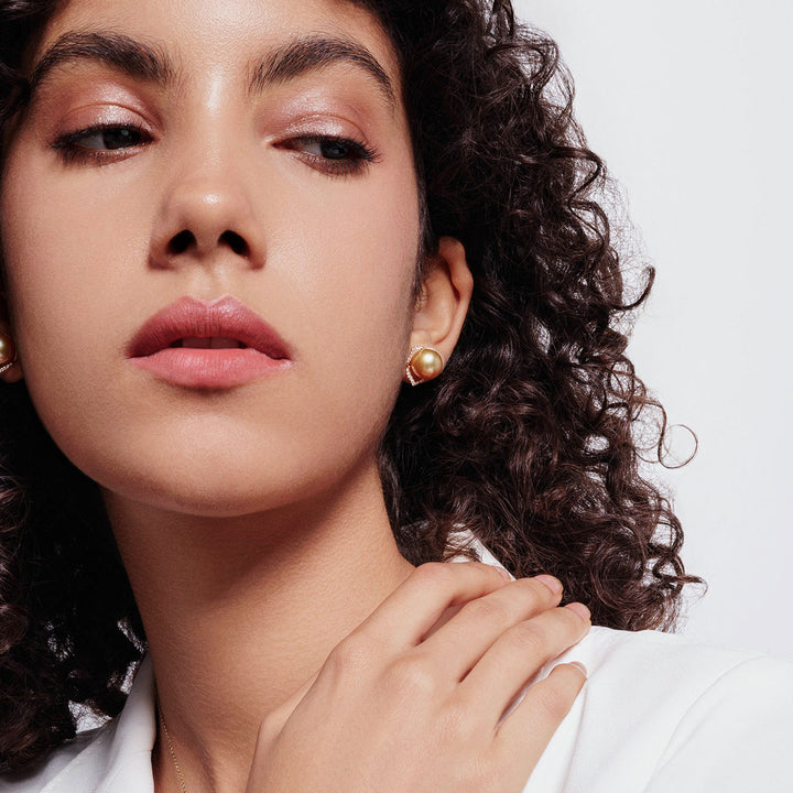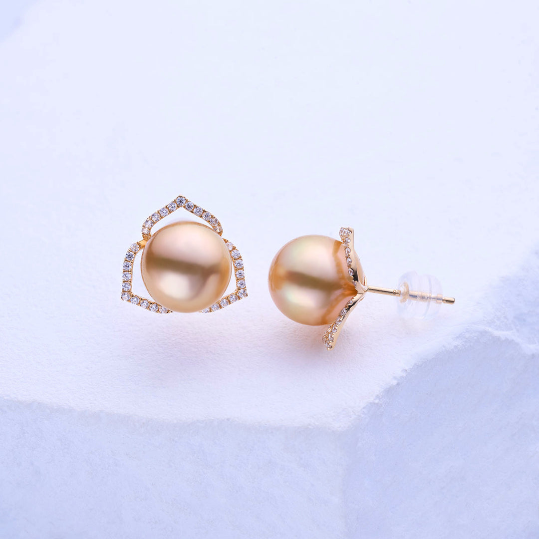 18K Solid Gold South Sea Golden Pearl Stud Earrings KE00240 - PEARLY LUSTRE
