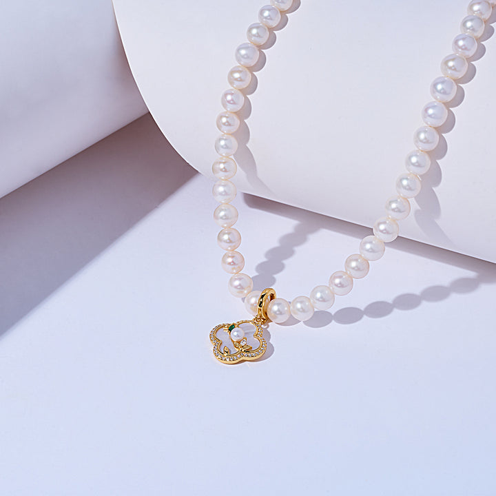 สร้อยคอมุกน้ำจืดสีขาวประกายเงางาม รุ่น WN00783 | PERANAKAN