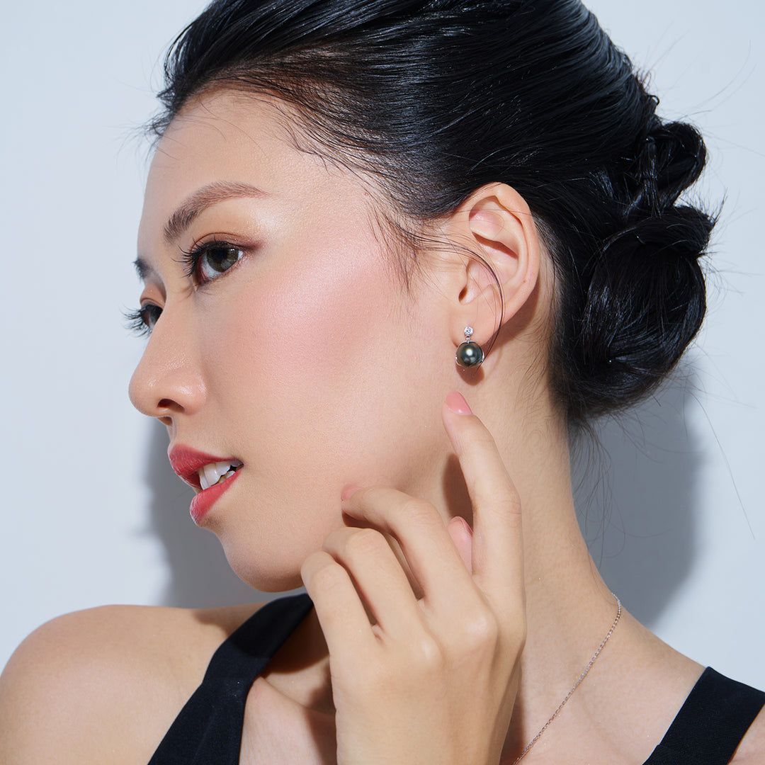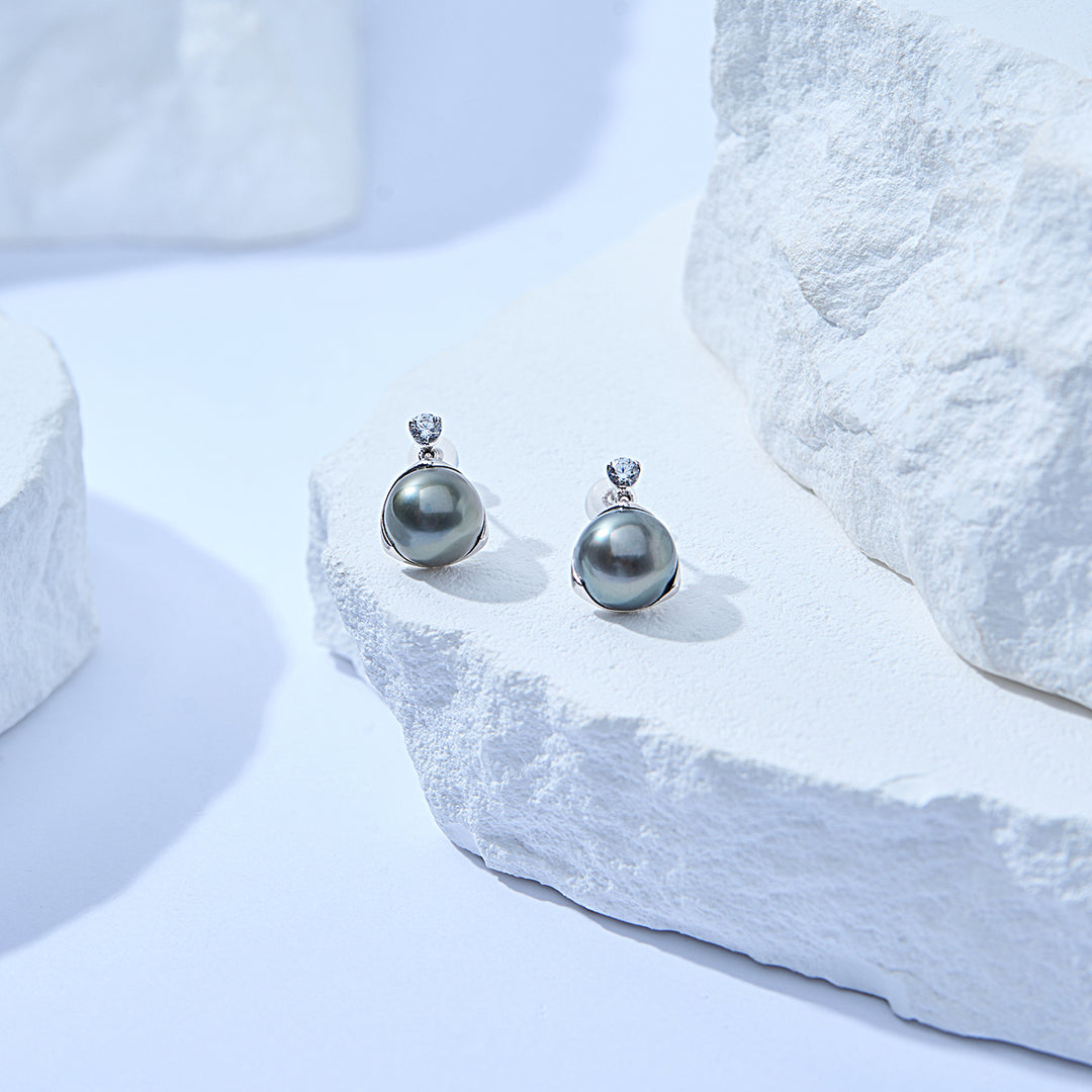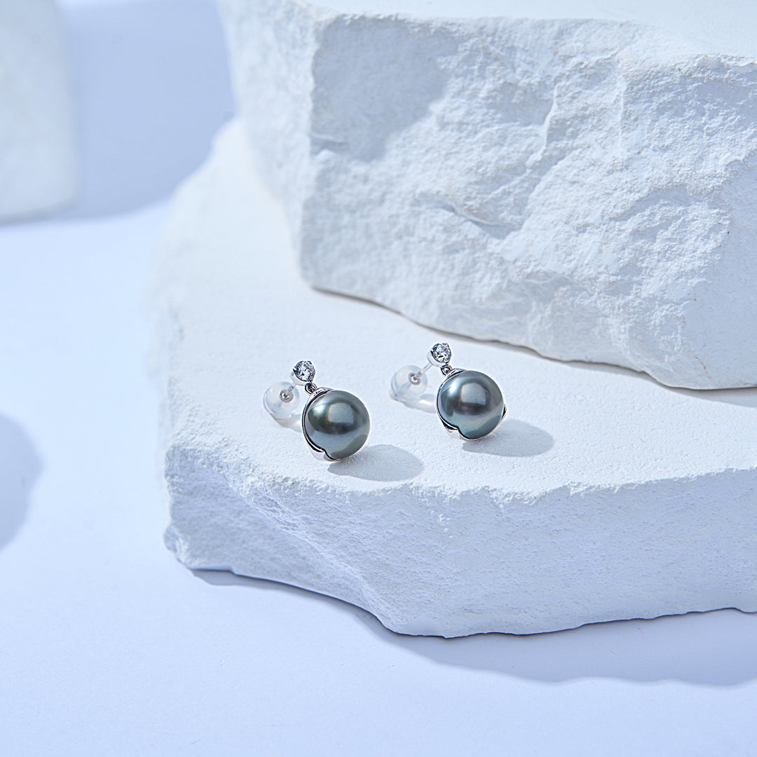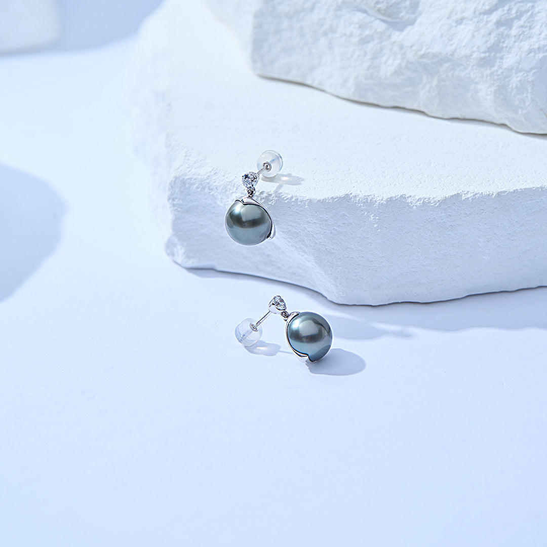18K Tahitian Pearl Earrings KE00272 | DOME - PEARLY LUSTRE