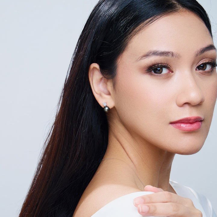 Elegant Tahitian Saltwater Pearl Earrings WE00914 - PEARLY LUSTRE