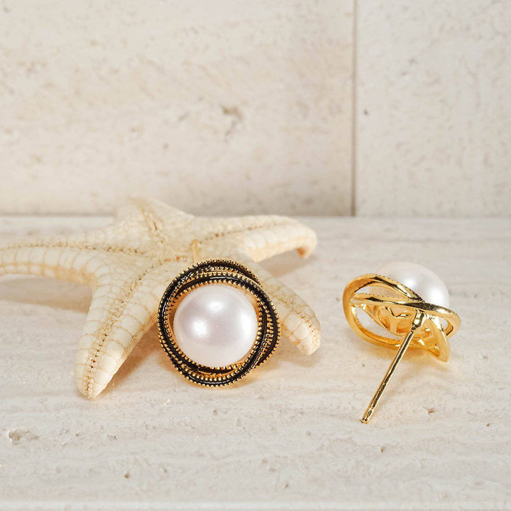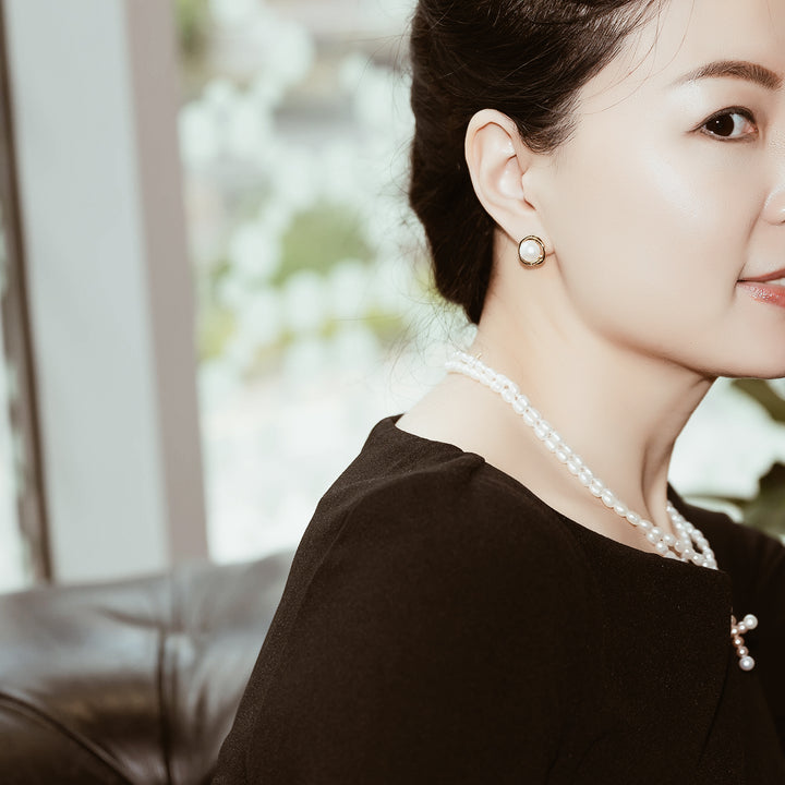 ไข่มุกห่อทอง ด้านหลังเป็นมุก  ได้รับแรงบันดาลใจจากความอบอุ่นและความแข็งแกร่งของรัง เครื่องประดับที่มีสไตล์ชิ้นนี้มาพร้อมกับแผ่นรองหลังมุกสดที่ให้ความรู้สึกสบาย เพื่อรับประกันความสวยงามในทุกมุม เรียบง่ายแต่มีสไตล์ ต่างหูนี้จะดูงดงามเมื่อสวมคู่กับกางเกงยีนส์มีสไตล์และแจ็กเก็ตหนัง