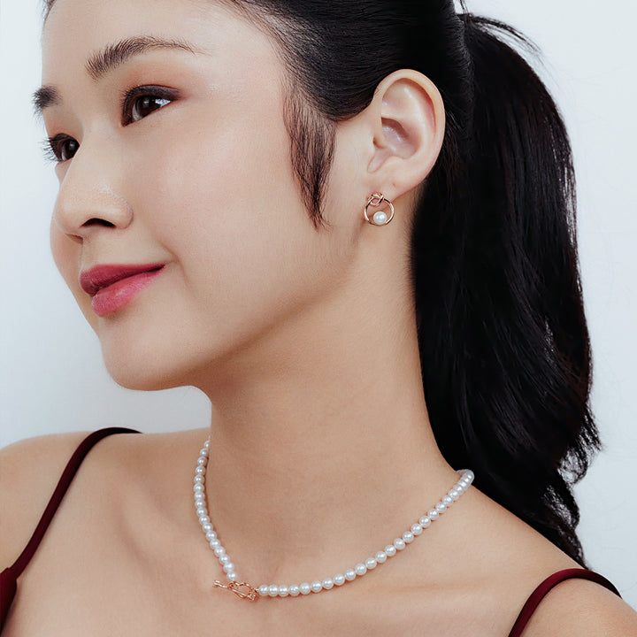 一颗淡水珍珠被柔和的金环轻轻托起,环的形状编织成一个精致的心形。这件独特的作品包括一个淡水珍珠止动器,我们的设计师希望这件作品能赋予佩戴者优雅的魅力。这件经典的作品与一件时尚的西装外套搭配起来会显得格外惊艳。