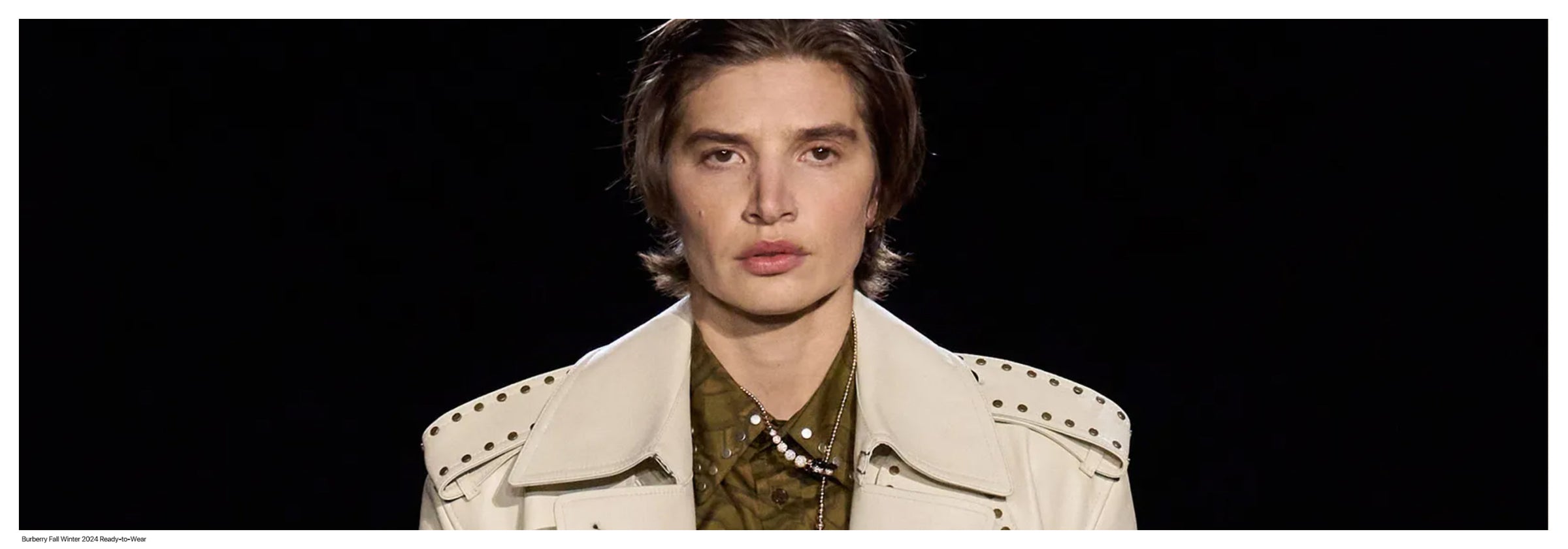 最后但同样重要的是,Burberry 重新诠释了其标志性符号,将它们与现代质感融合,唤起定义本季关键单品的温暖与舒适。Daniel Lee 的艺术视角通过独特的珠宝形状和造型得以展现,提升了这一全新表达。珍珠被无缝融入,融合了传统与现代。泡泡链珍珠项链以其独特的形状捕捉了童年记忆中的轻盈与欢乐。加入珍珠元素为整体增添了一丝精致感,打造出散发奇思妙想魅力与优雅的装扮。