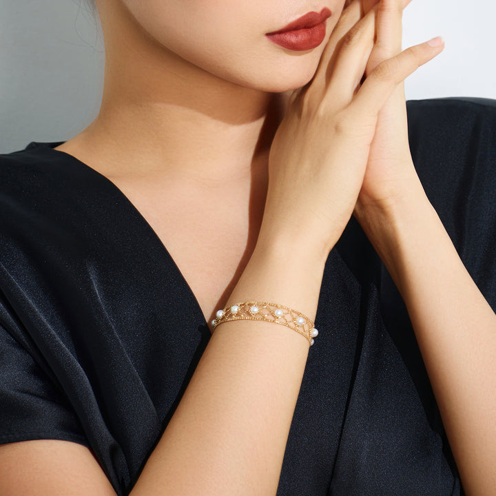 Elegant 18K Solid Gold Freshwater Pearl Bracelet KB00003 - PEARLY LUSTRE