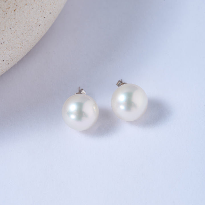 18K Gold Top Lustre Australian White South Sea Pearl Stud Earrings KE00140 - PEARLY LUSTRE