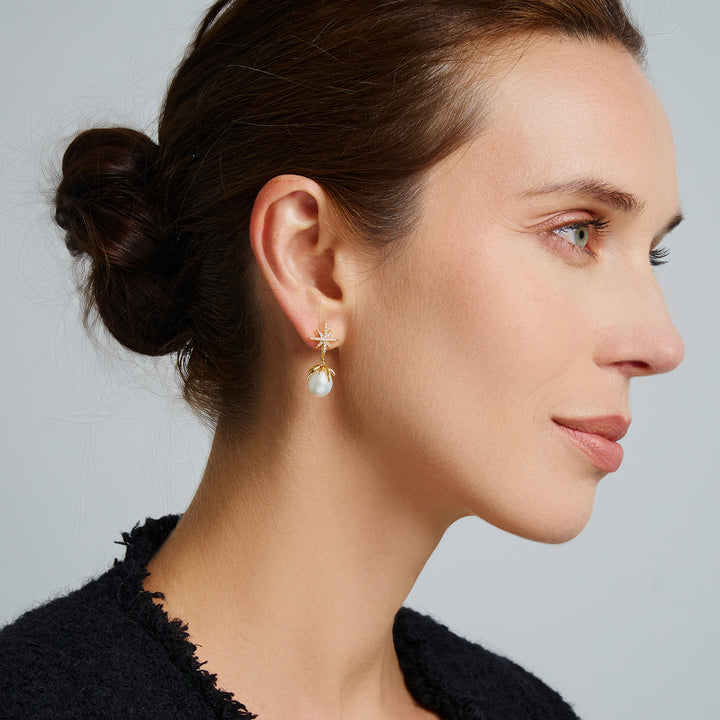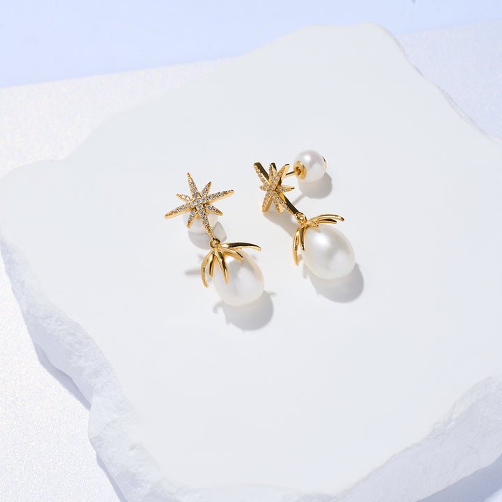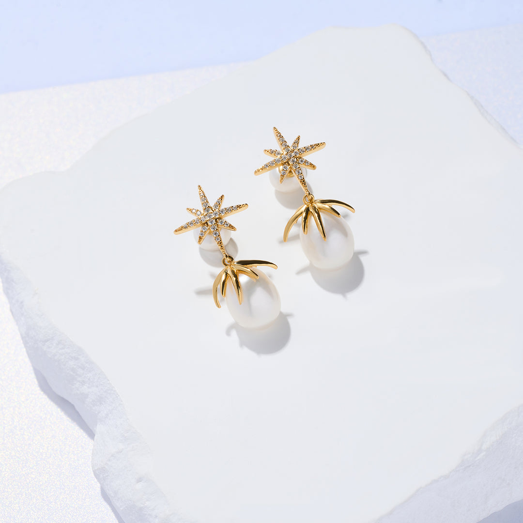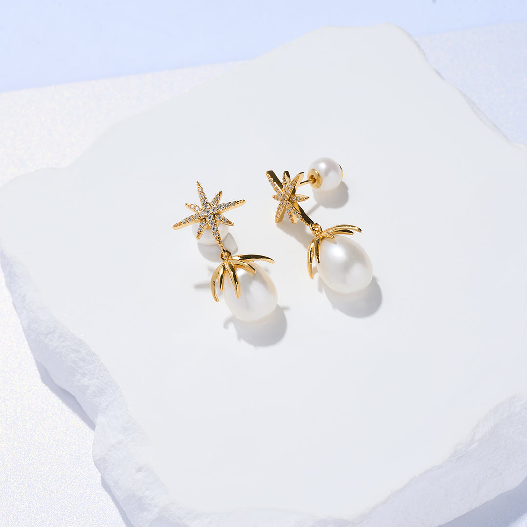 在每个派对上都闪耀,佩戴这些时尚的珍珠耳环。这款优雅的淡水珍珠首饰采用星爆设计和泪滴形淡水珍珠,为婚礼或华丽聚会增添了一丝优雅。