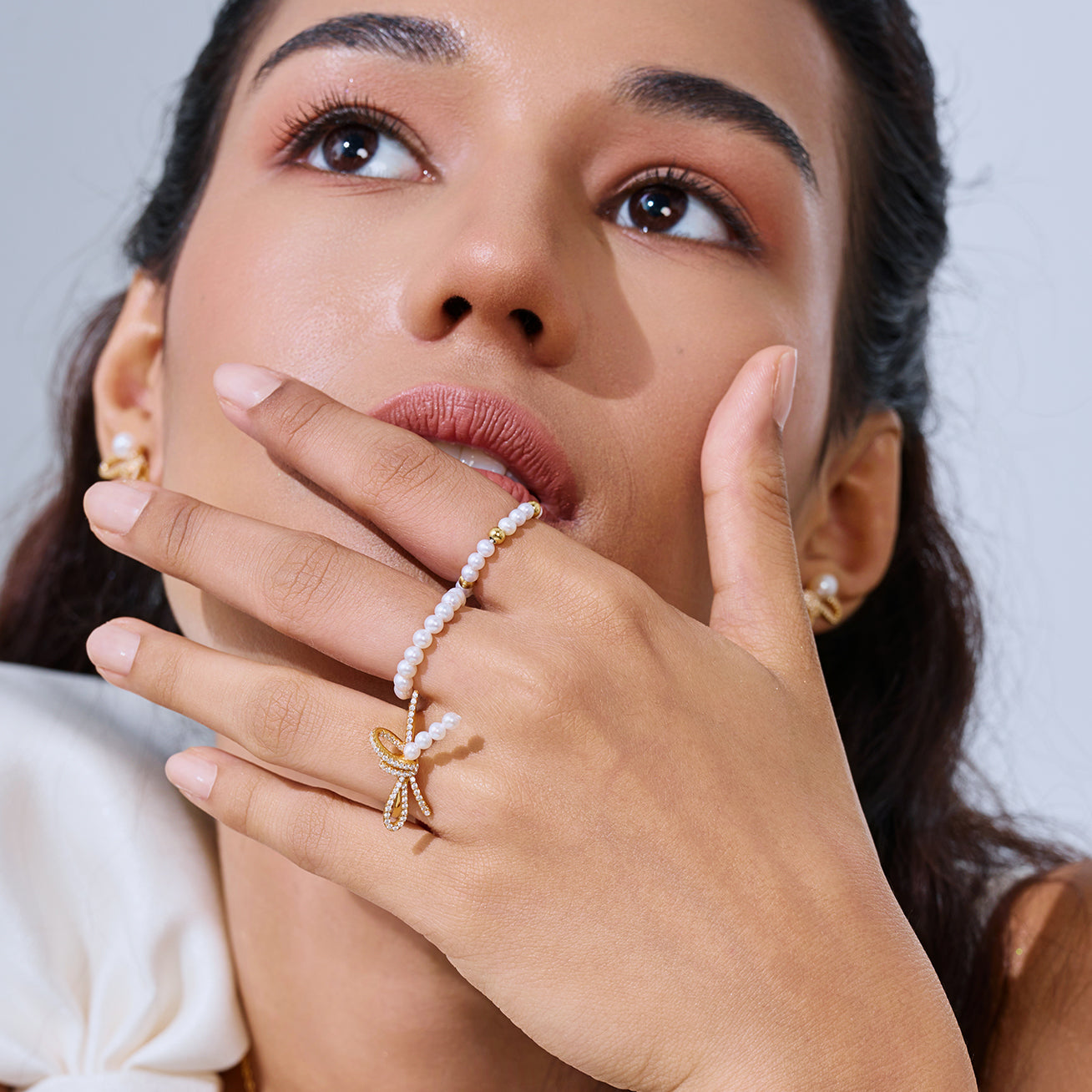 将您拥有的任何戒指与这款经典且永不过时的珍珠戒指混搭。这款多功能设计让您时尚搭配,完美平衡永恒经典与现代元素,吸引所有旁观者的目光。